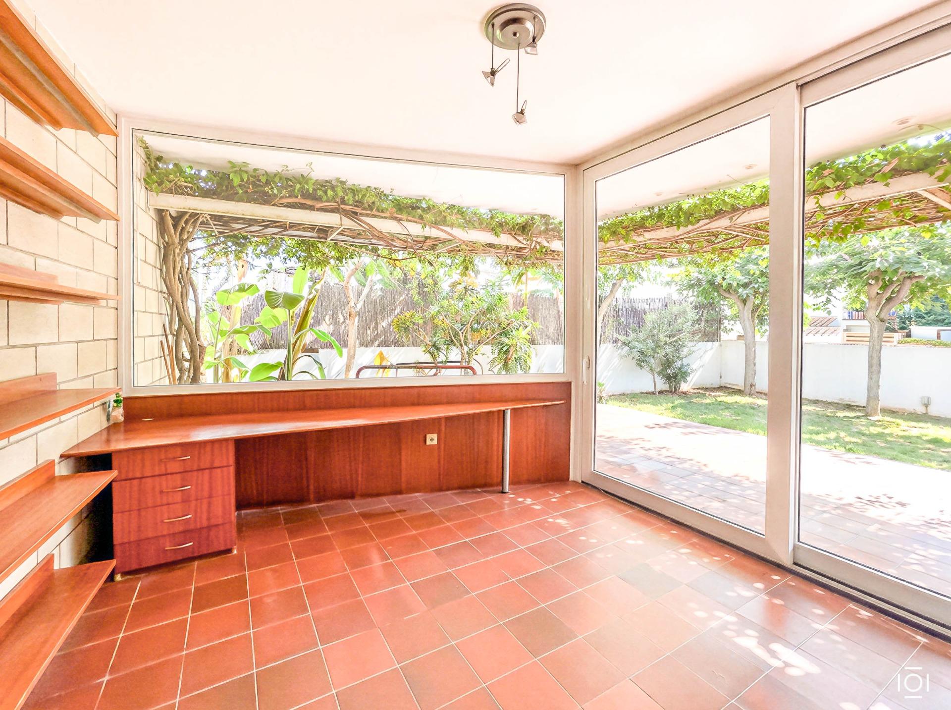 With a garden that surrounds the house without a pool but with enough space to build it whoever wants it, both in the front and in the back where we also find the barbecue area, the rear part facing north is ideal in summer, in This area also has the laundry area.