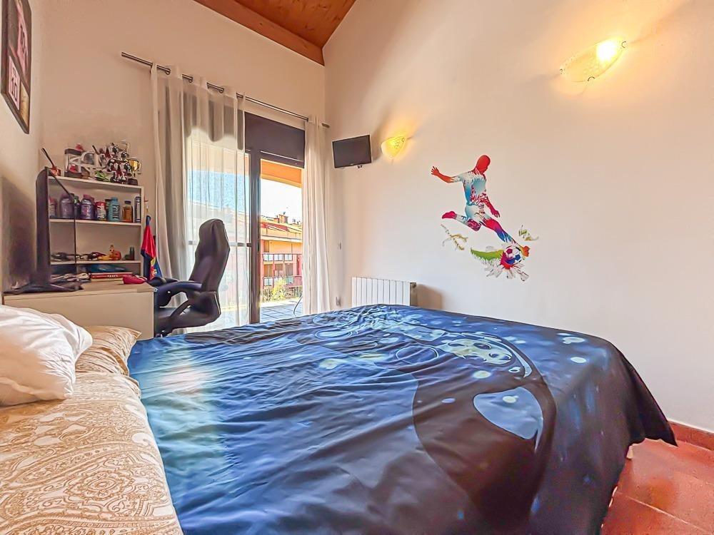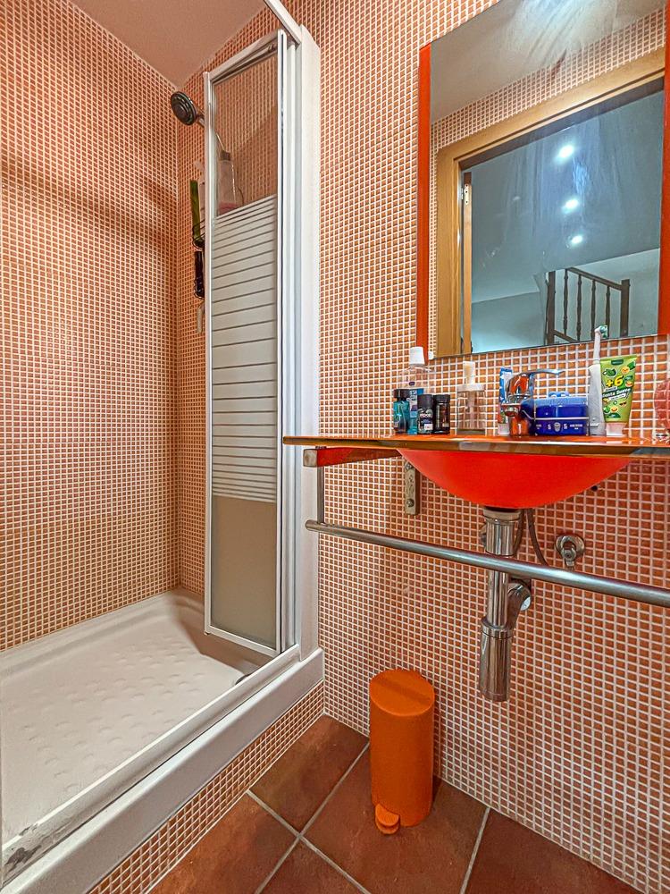 À l’étage supérieur se trouve l’espace nuit avec trois chambres doubles, toutes avec accès à des terrasses privées : une donnant sur l’entrée, et deux ouvrant sur une grande terrasse ensoleillée, idéale pour se détendre. Une autre salle de bain complète est également présente à cet étage.