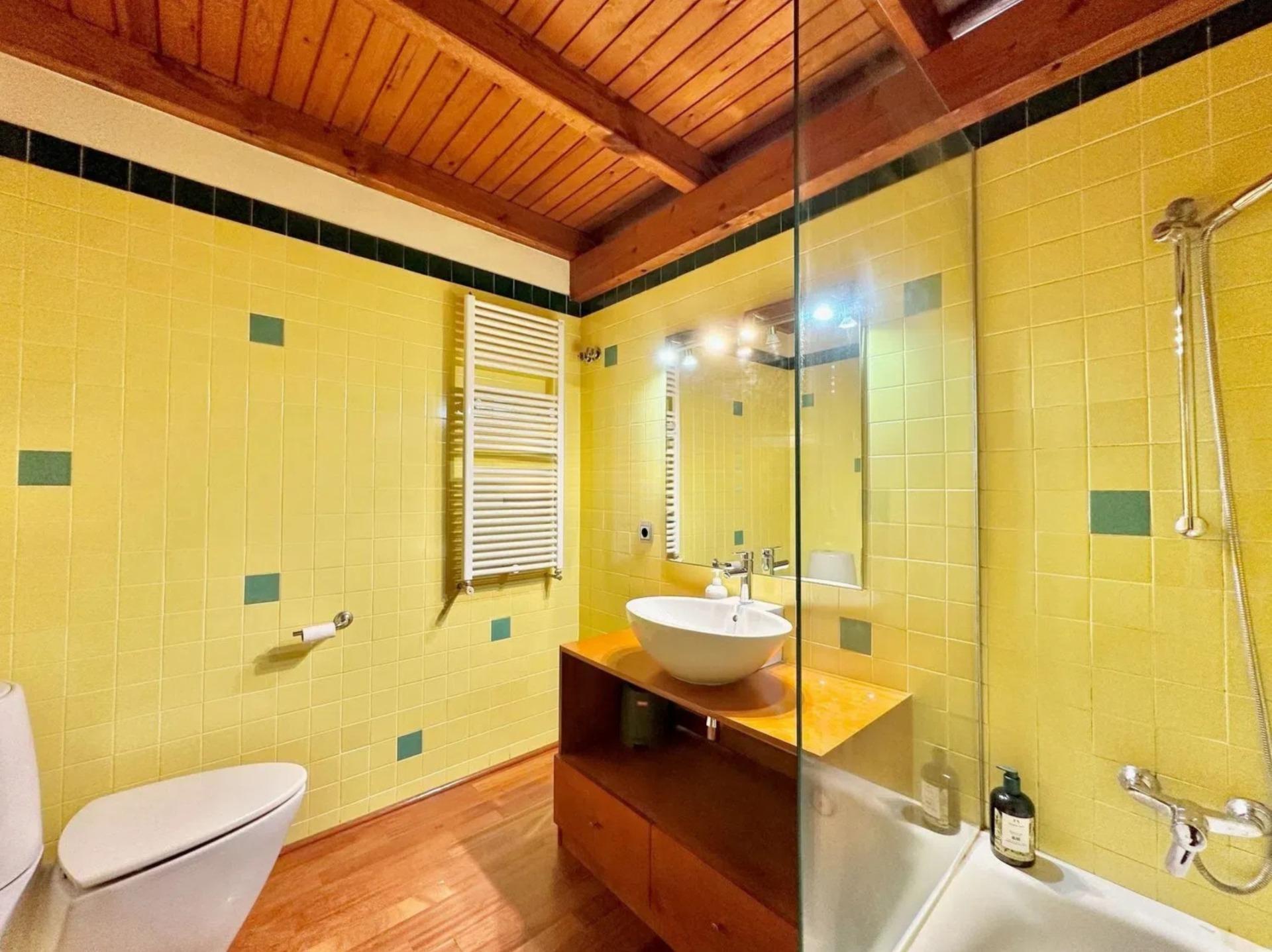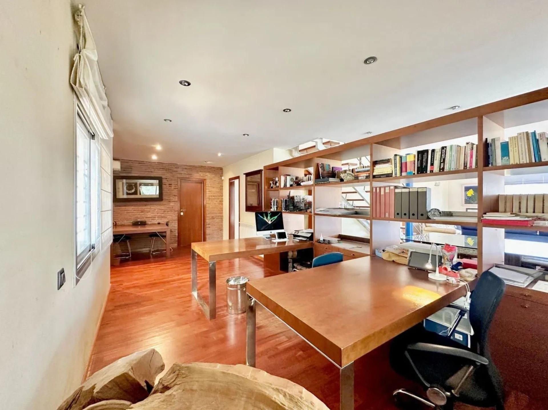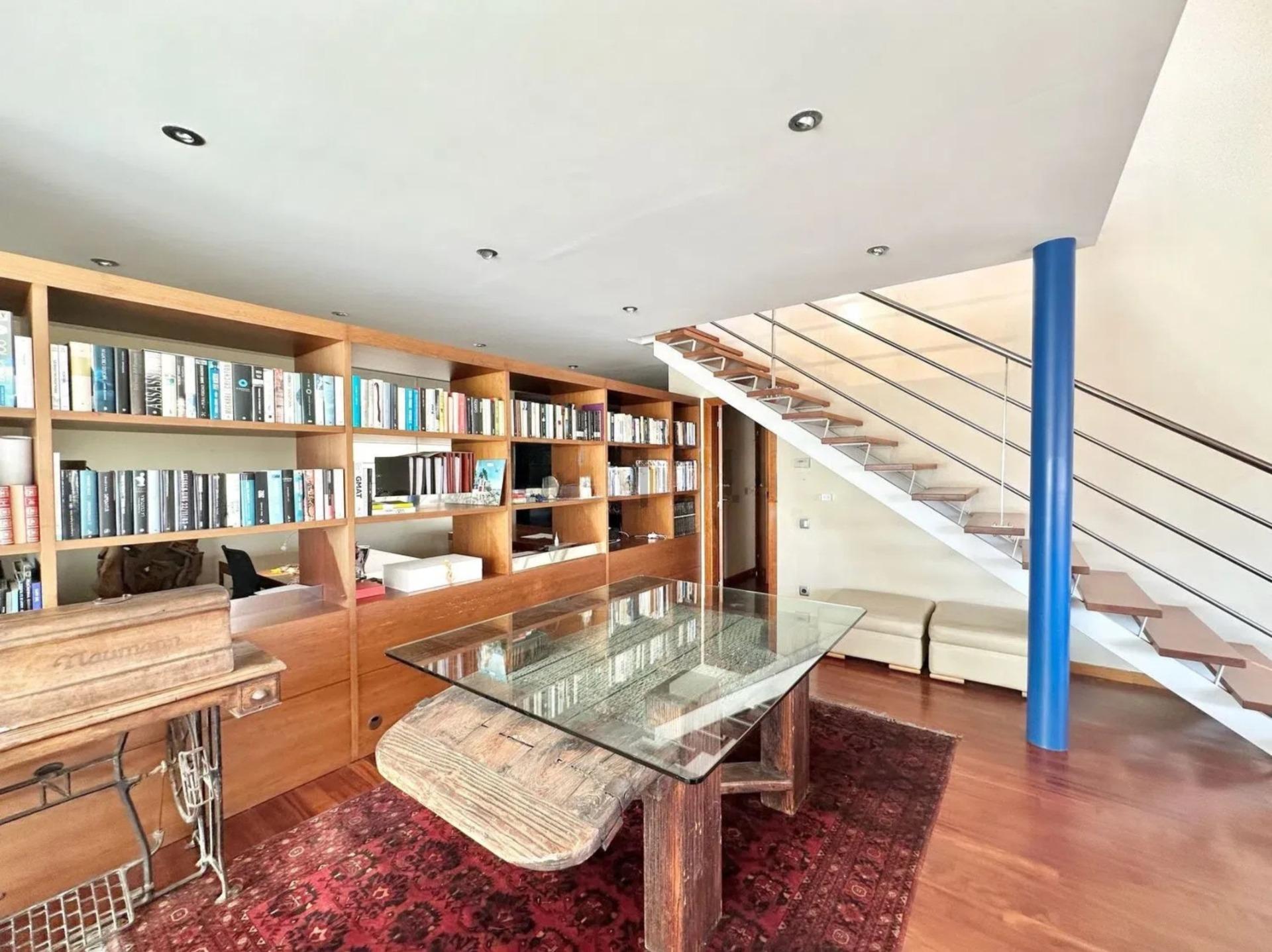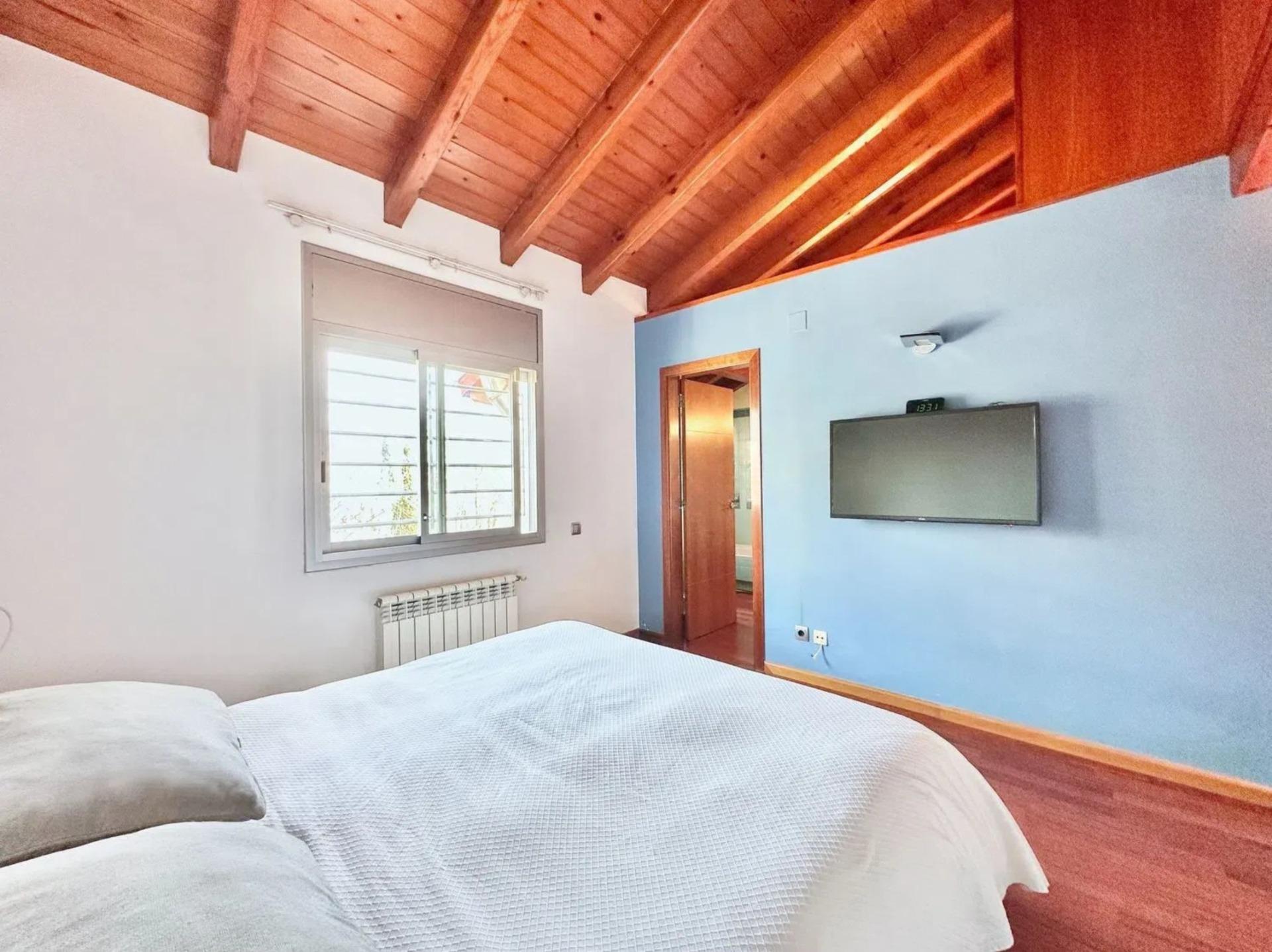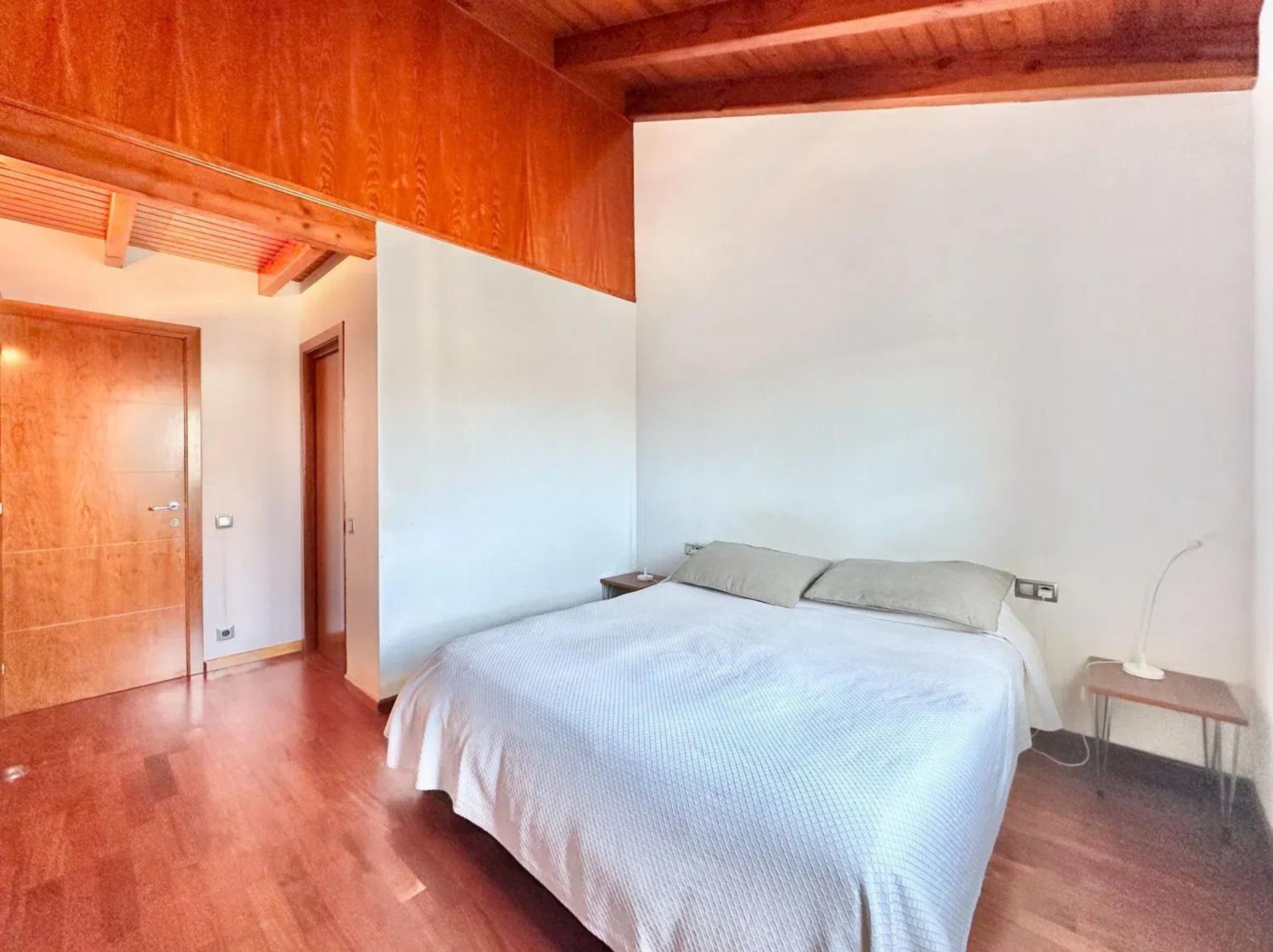 L’un des éléments les plus singuliers de la propriété est son spectaculaire plafond mansardé avec poutres apparentes en bois, qui apporte caractère, chaleur et une sensation d’espace très particulière, créant une ambiance unique difficile à trouver dans les habitations contemporaines.