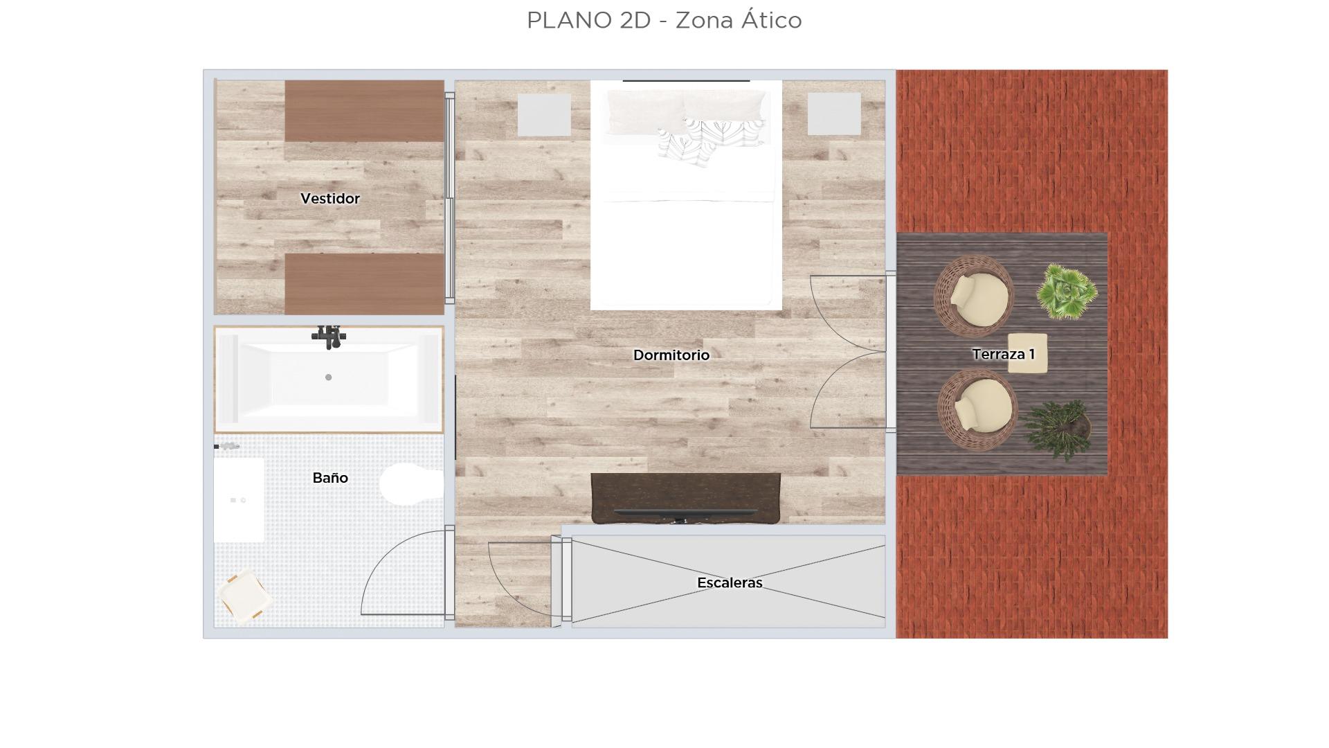 Maison mansardée : suite parentale avec salle de bains et dressing.