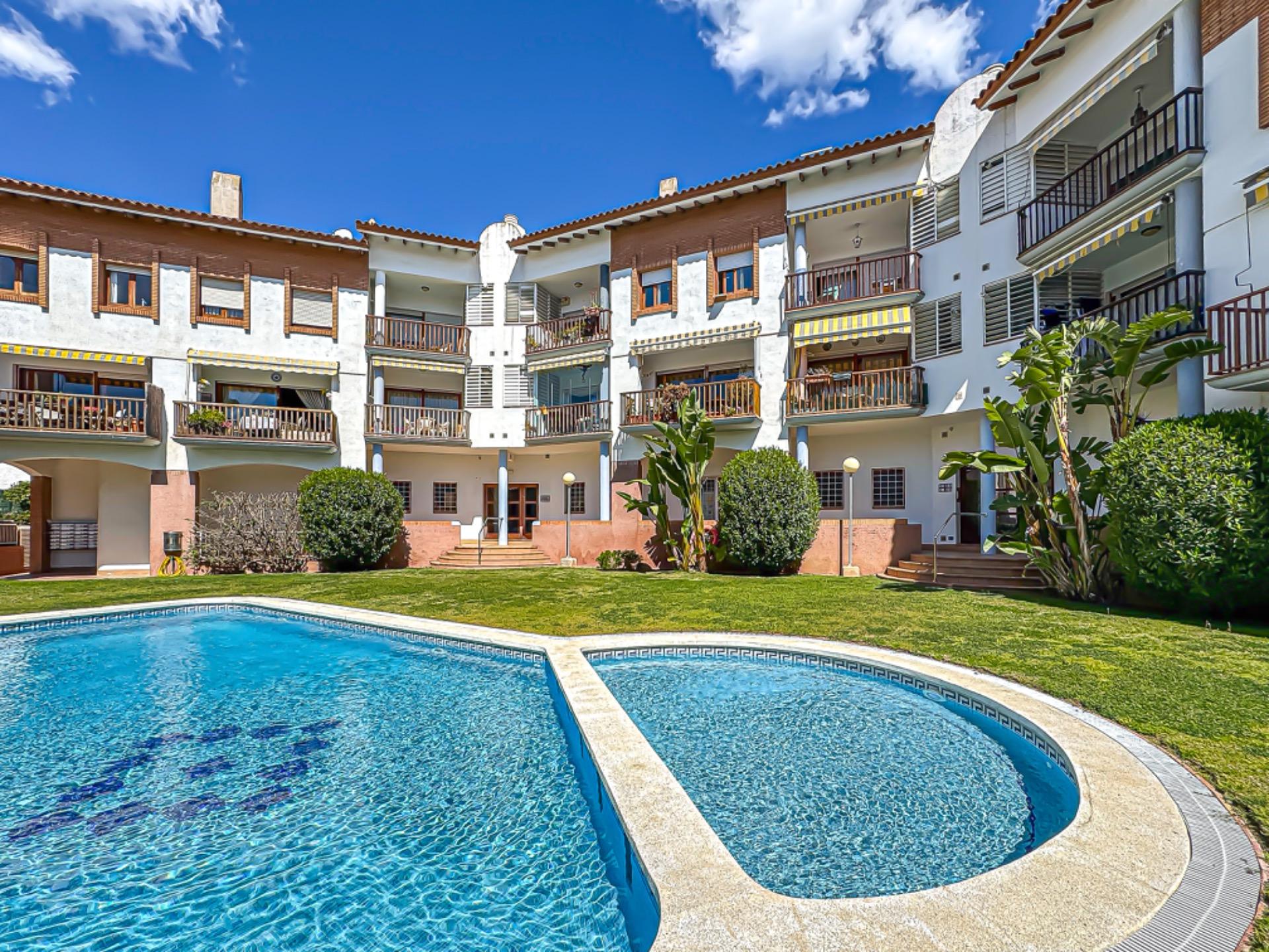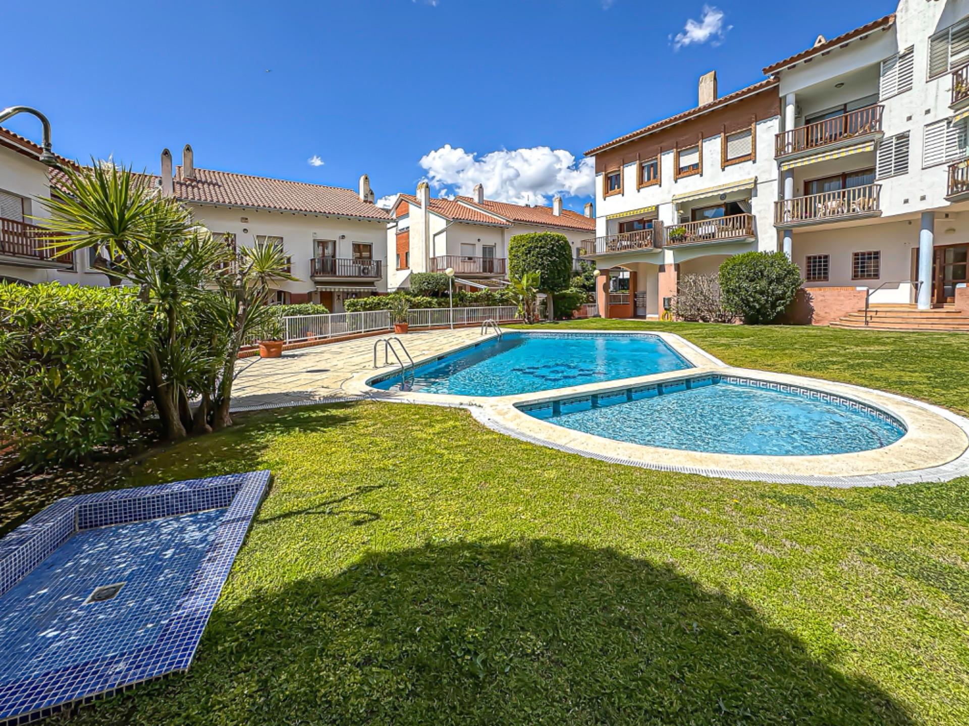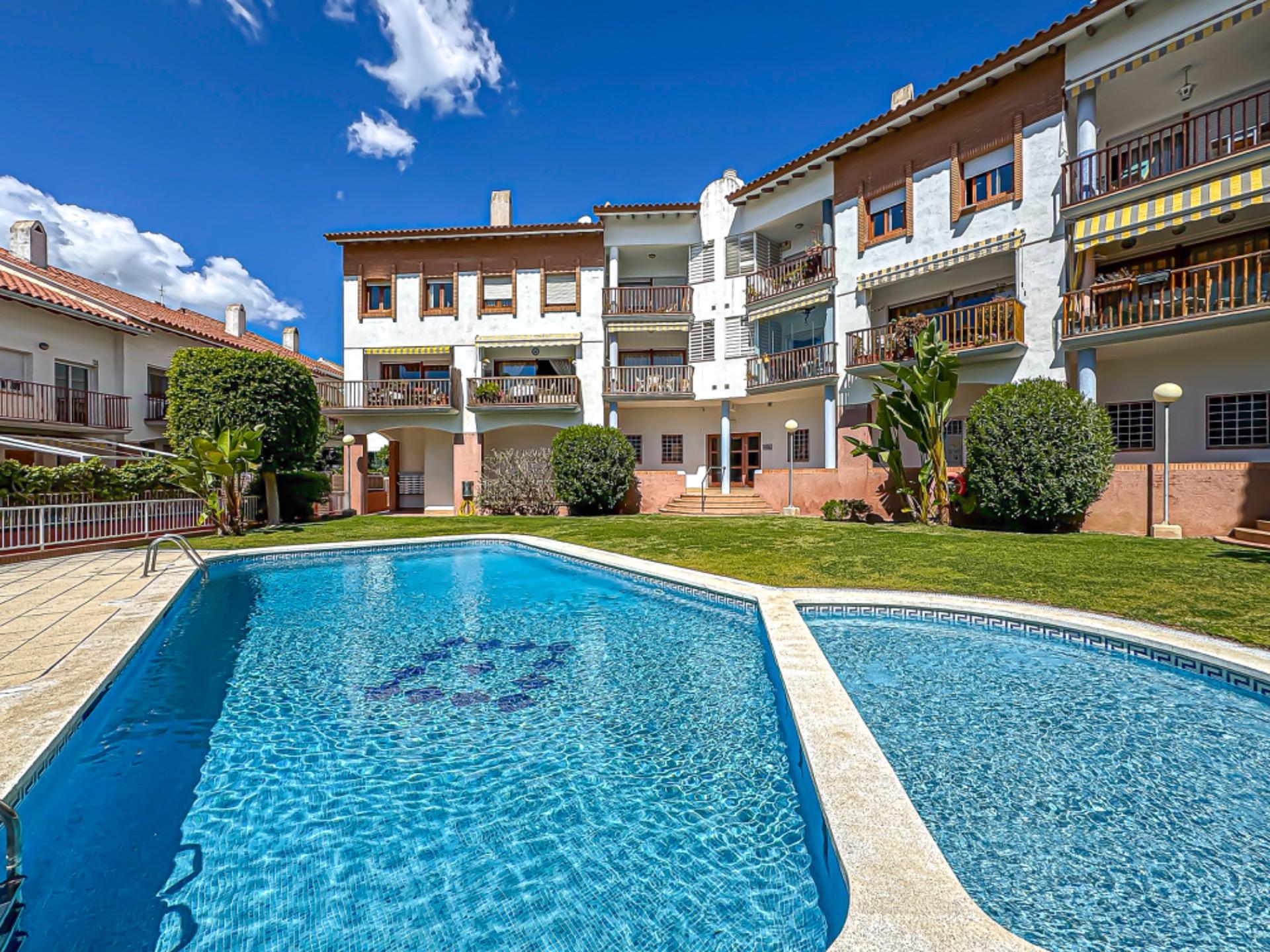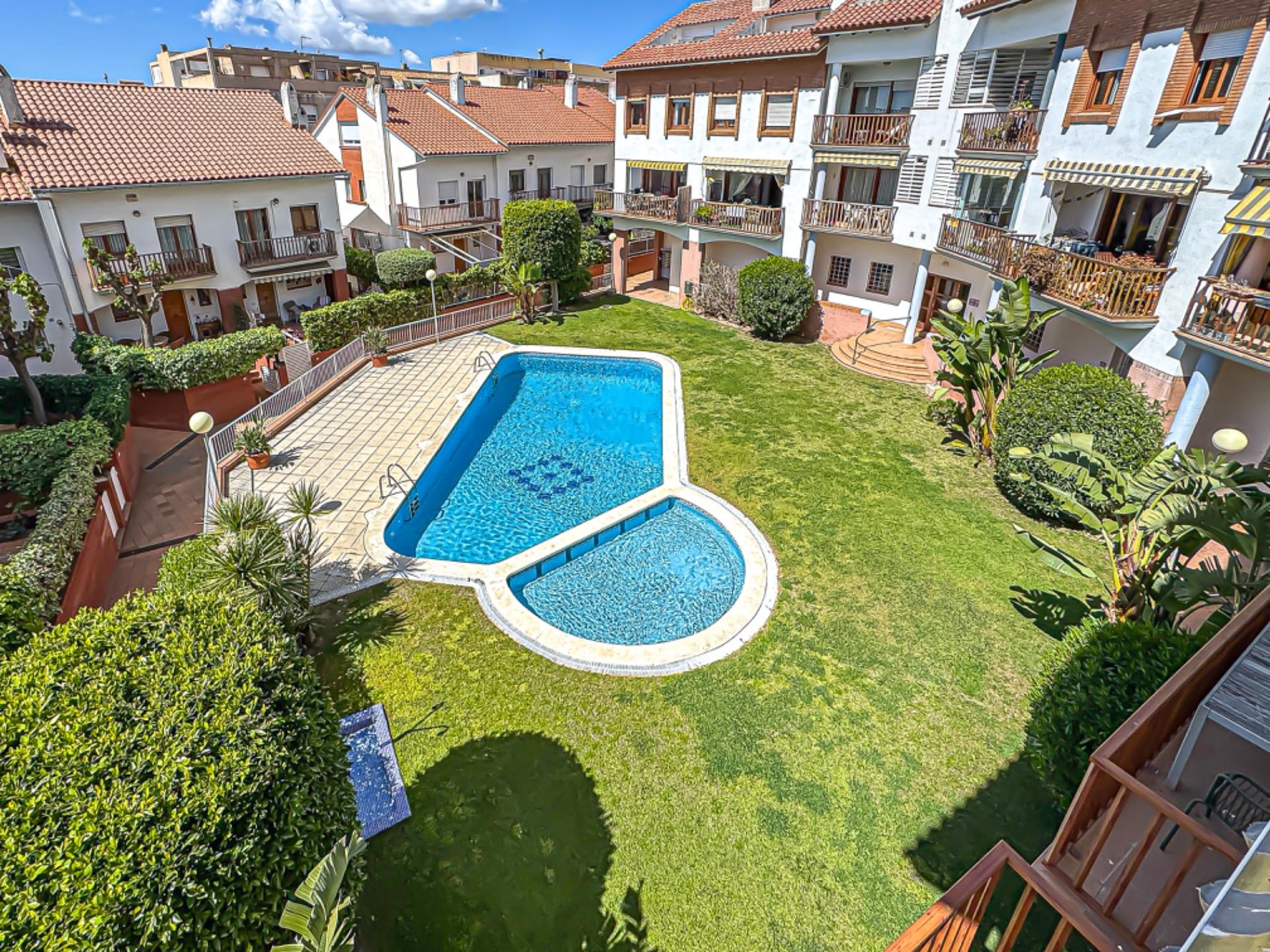 Preciosa y bien cuidada zona comunitaria con piscina para las largas tardes de verano.