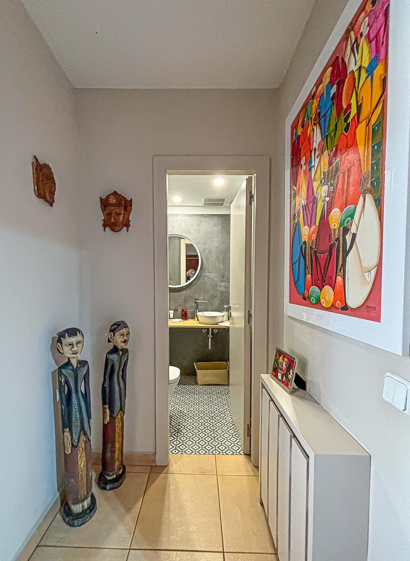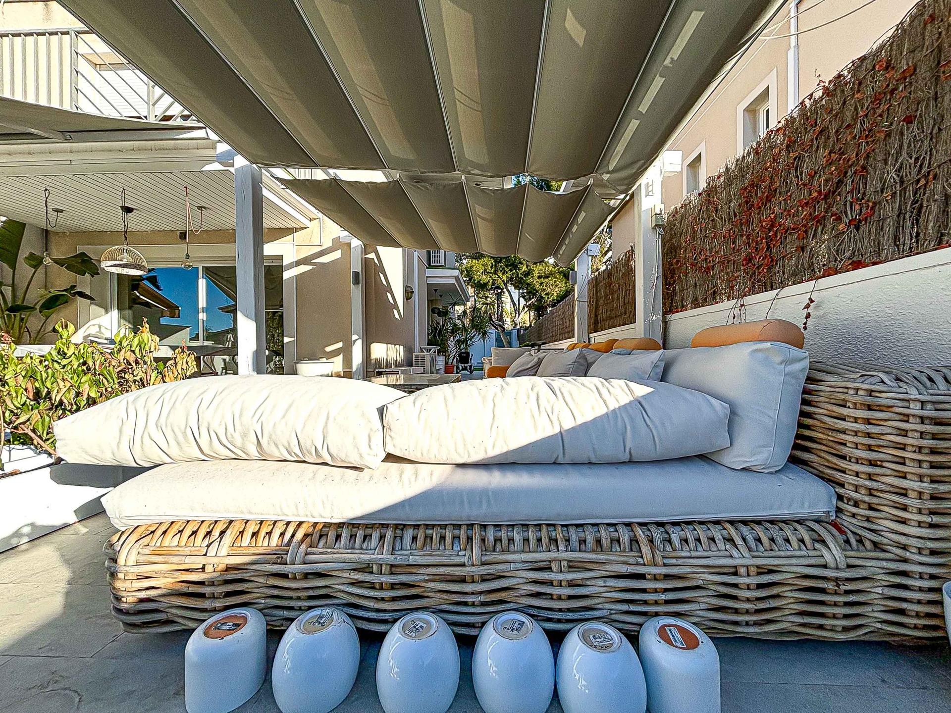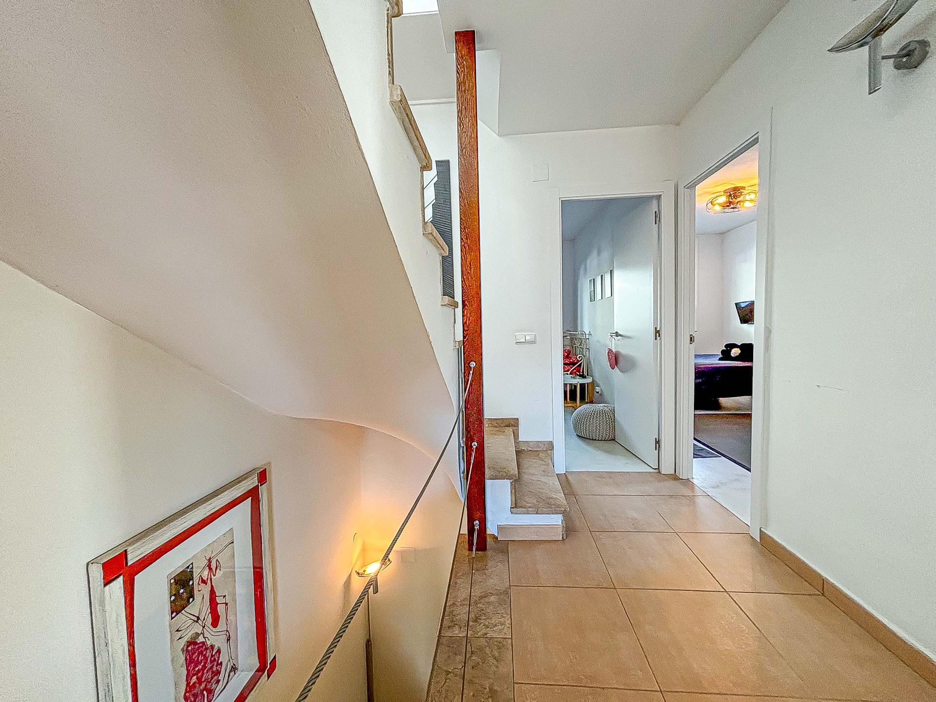 En la entrada agradable espacio para barbacoa y zona chill out, entrando en la propiedad cocina independiente totalmente equipada, salón comedor bien diferenciado, zona de descanso con chimenea y salida a bonito jardín con porche y piscina propia, orientada a sur. Aseo de cortesía en esta misma planta, subiendo unas cómodas escaleras, nos encontramos 3 habitaciones dobles todas exteriores, armarios empotrados, una de ellas con salida a terraza. Baño completo con plato de ducha. Zona de buhardilla convertida en habitación de matrimonio con vestidor y baño completo, salida a terraza con vistas al mar.