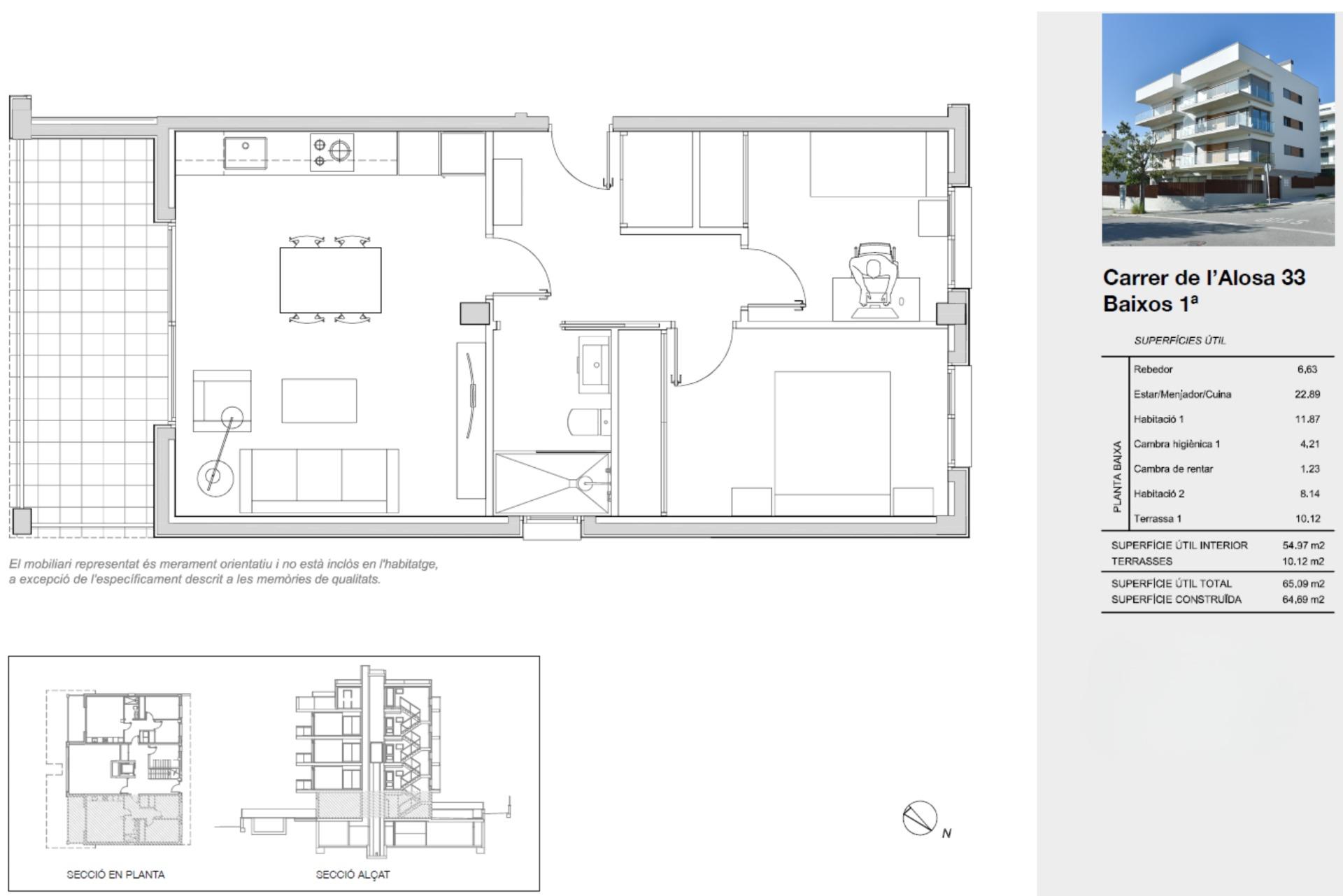 Estrena hogar en el Xarol, una exclusiva planta baja de obra nueva a 20 minutos caminando de la playa y con acceso rápido a la autopista. Con 64 m² construidos, ofrece un diseño contemporáneo que aprovecha cada espacio: una habitación doble luminosa, una habitación versátil y un baño moderno pensado para el máximo confort.