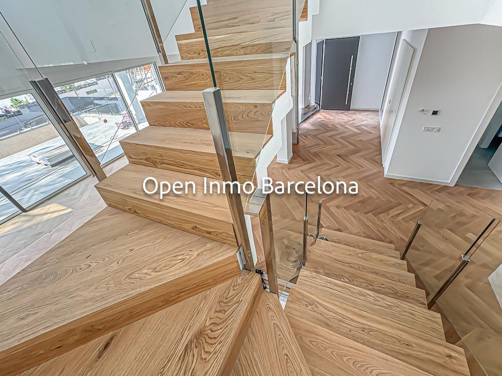 The house has been designed with ecological and efficiency criteria in mind, achieving an A+ energy rating. It includes aerothermal air conditioning systems, solar panels for energy self-sufficiency and continuous ventilation to maintain a healthy environment. High-quality finishes, such as natural wood flooring and two-tone aluminium joinery, bring warmth and sophistication to every corner.