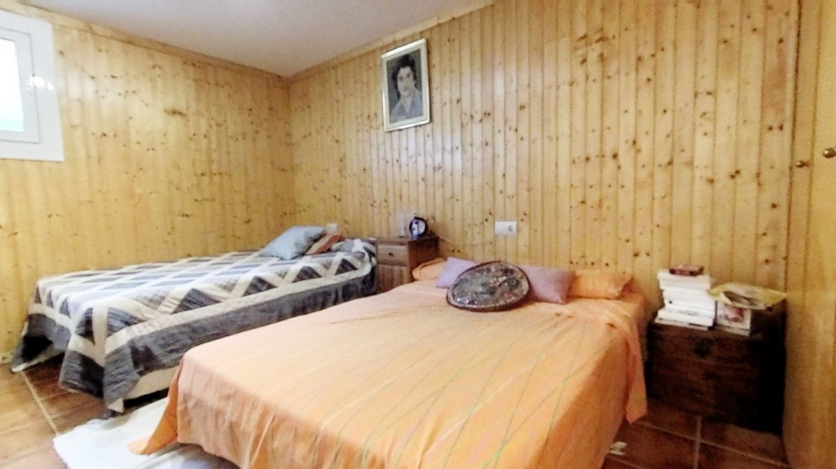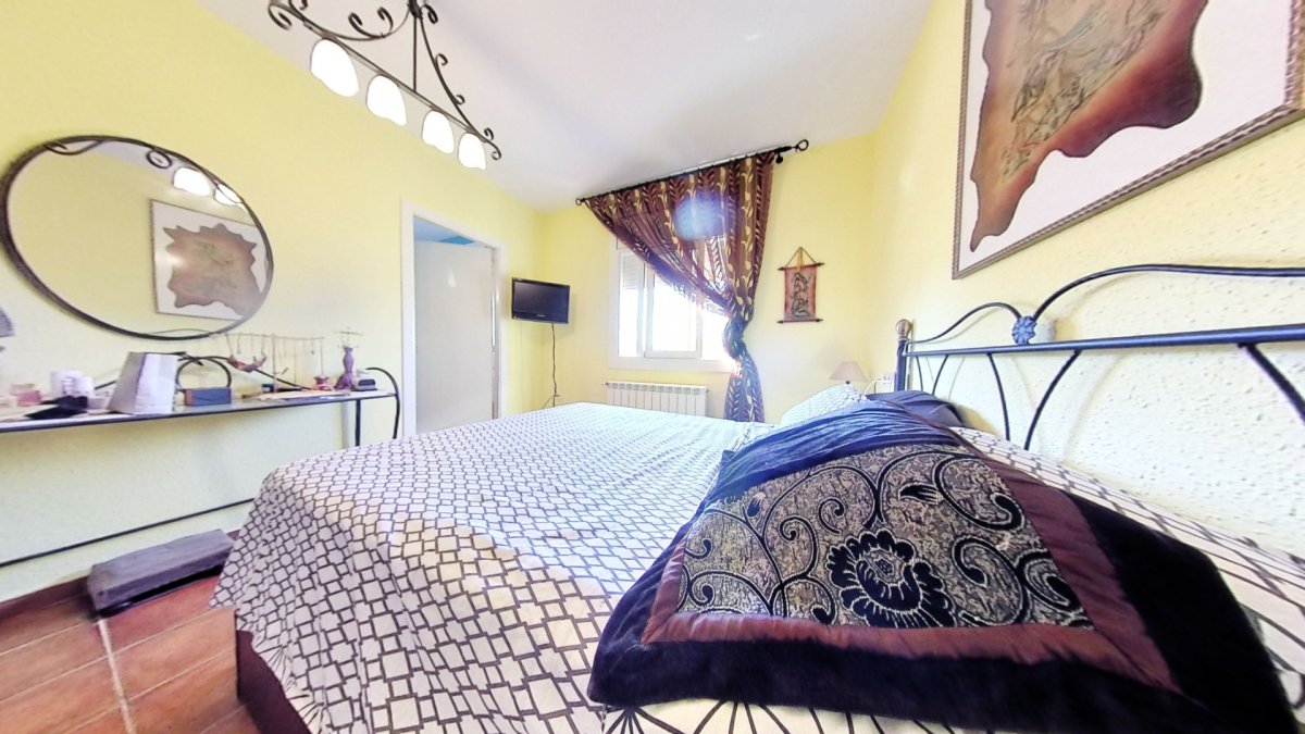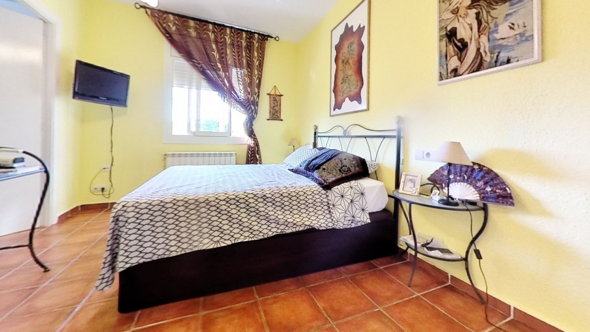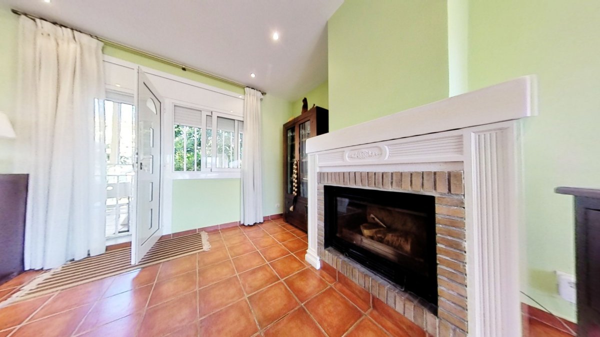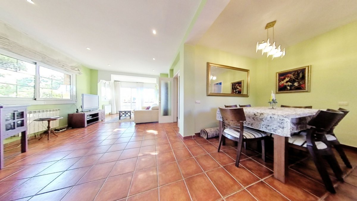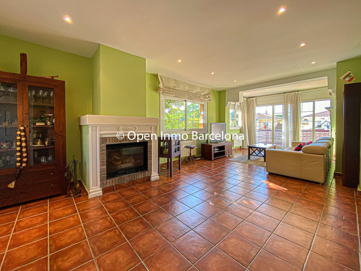 Upon entering, a large hall welcomes us, from where we access a distributor with a large built-in wardrobe. On this floor, we find two double bedrooms that share a full bathroom with a shower and bathtub. Going up to the upper floor, we are greeted by a 58 m² living-dining room with a fireplace, which opens onto a huge terrace with unobstructed views. The kitchen-diner is directly connected to the barbecue area and the garden with a pool.