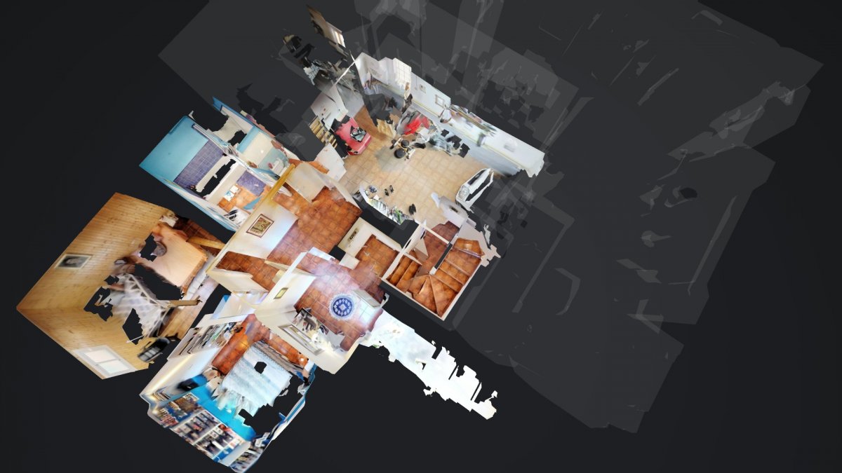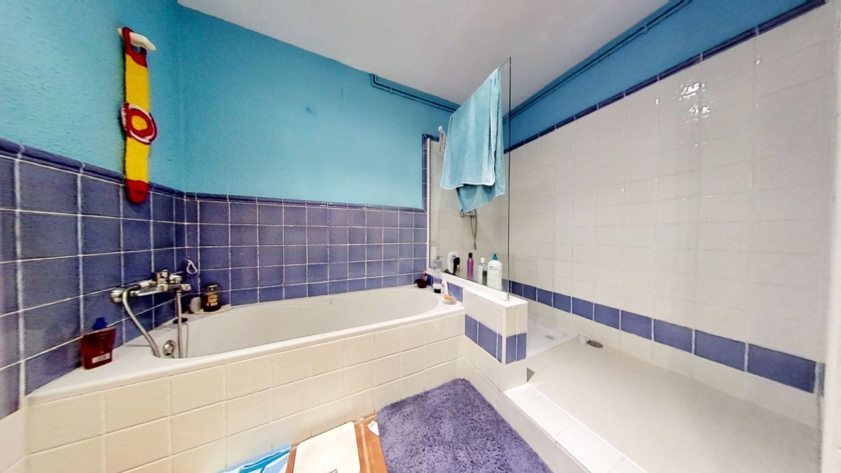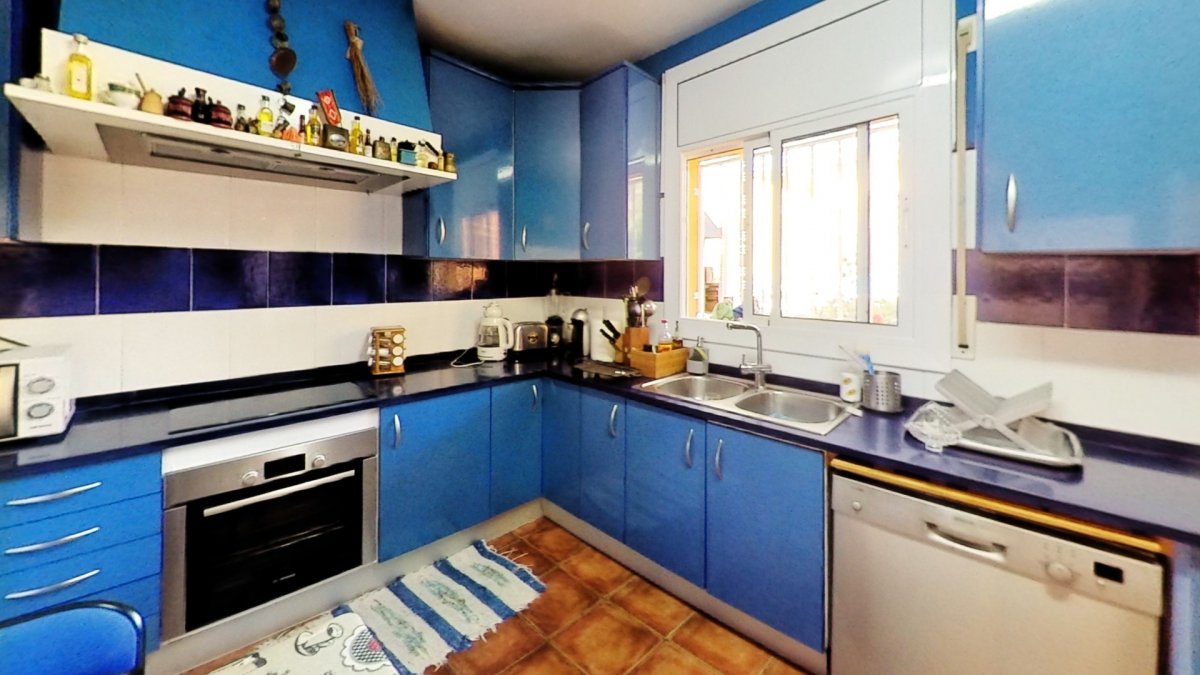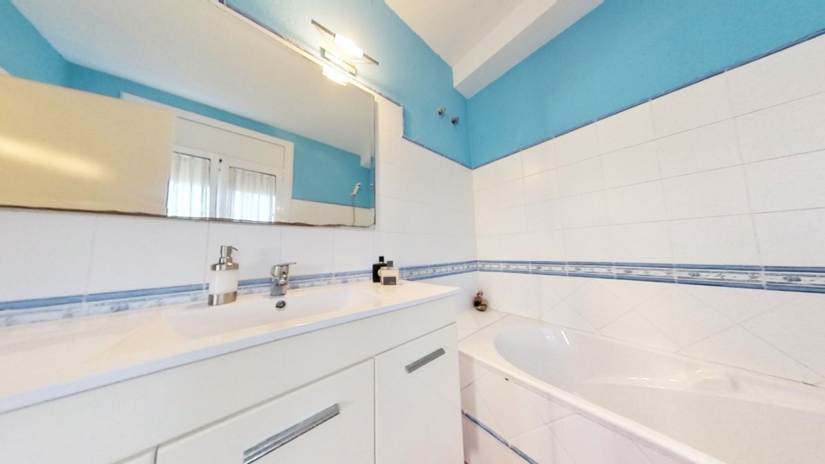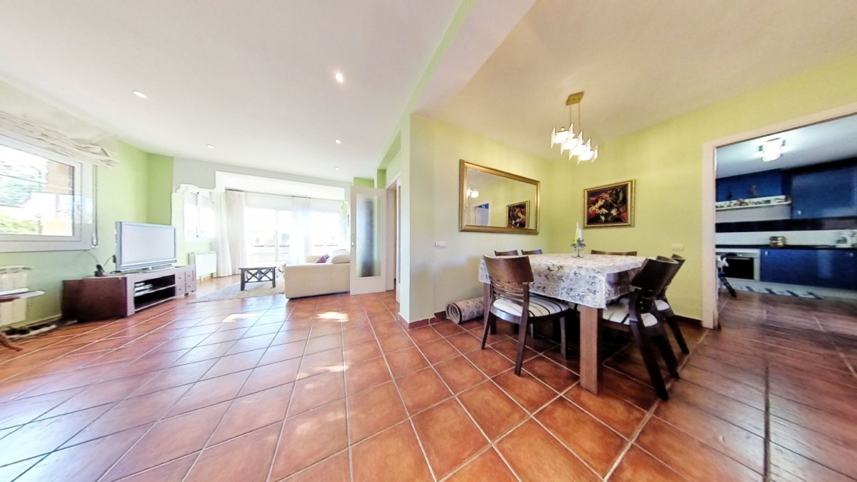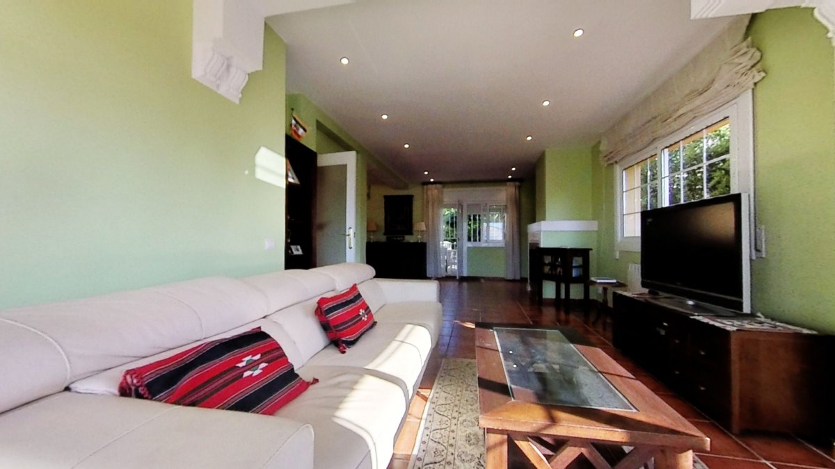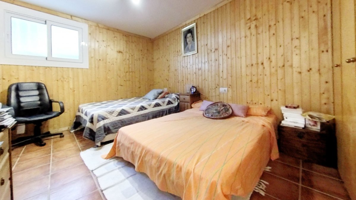 Upon entering, a large hall welcomes us, from where we access a distributor with a large built-in wardrobe. On this floor, we find two double bedrooms that share a full bathroom with a shower and bathtub. Going up to the upper floor, we are greeted by a 58 m² living-dining room with a fireplace, which opens onto a huge terrace with unobstructed views. The kitchen-diner is directly connected to the barbecue area and the garden with a pool.