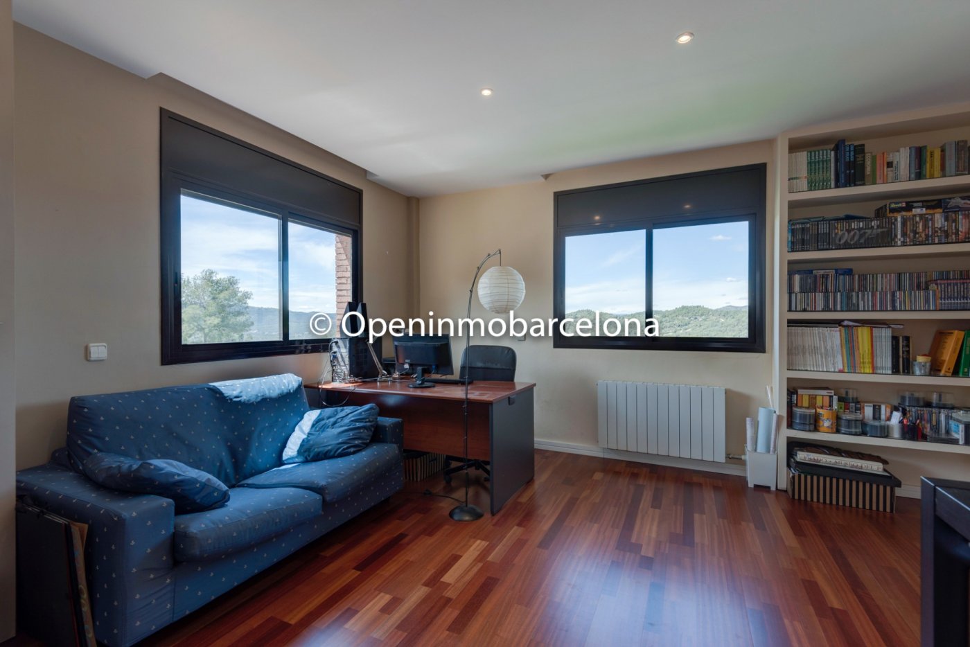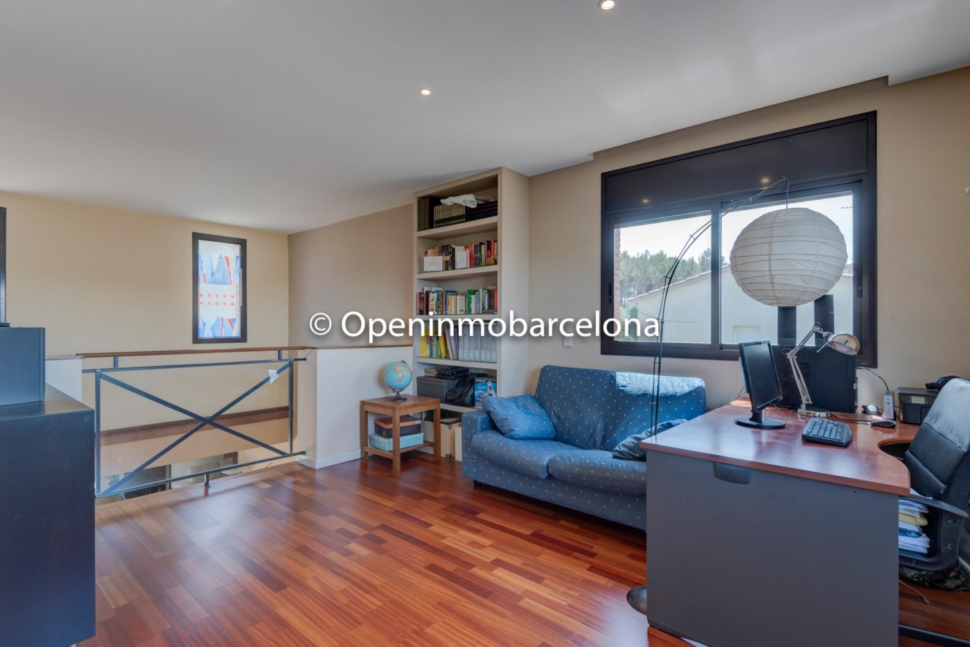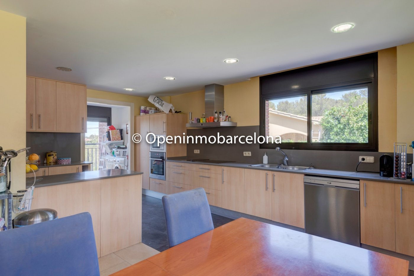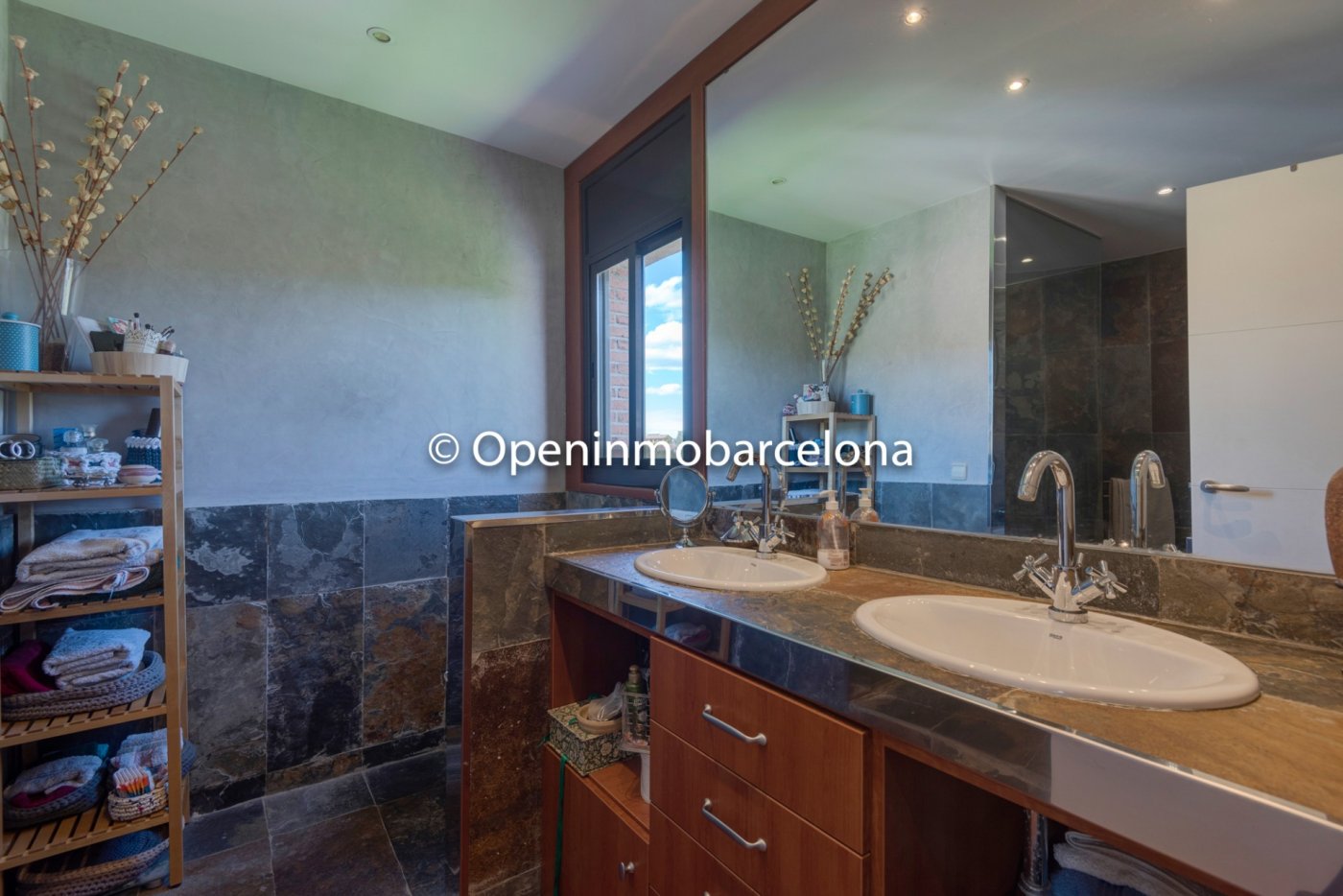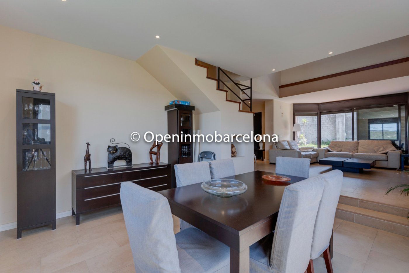 House in Mas Mestre Olivella, with mountain views, in a quiet area surrounded by nature and at the same time well connected. With front garden with porch and pool and backyard. Distributed on the ground floor of the garden we find a large hall open to the spacious living room with double height and direct access to the garden. Spectacular kitchen with laundry area and office area; hallway distributor to bathroom with shower and a double room, we also find in this hallway the access door to the basement garage, huge, for 3 cars and with a cellar area. On the upper floor we have on the left an office-study area open to the living room; and on the right hand side we find the master bedroom suite with an impressive bathroom with shower and bathtub and finished with natural stone and slate; dressing room and 2 bedrooms