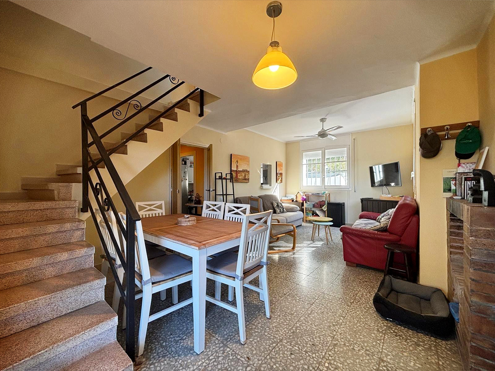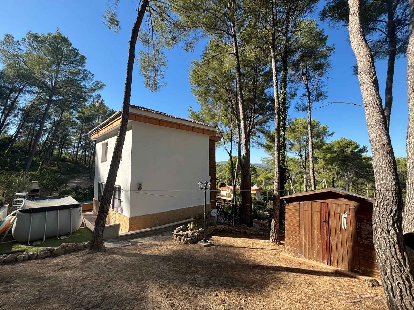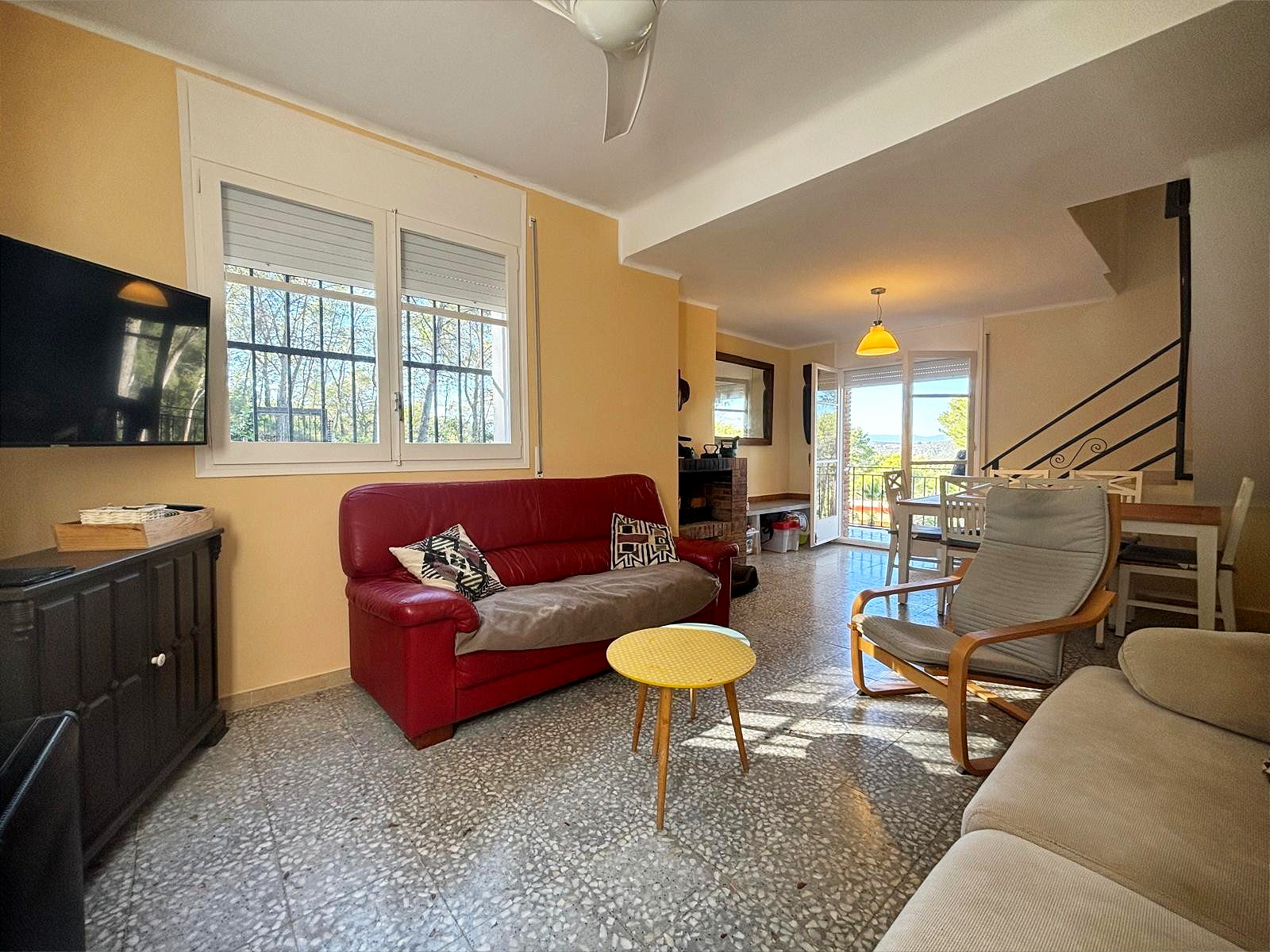 On the main floor, there is a cozy living-dining room with a fireplace and direct access to one of the terraces, lending spaciousness and light to the space. The separate, functional kitchen is fully equipped. There is also a full bathroom on this same floor. On the upper floor, there are three bedrooms, one of them a double, all with views of the natural surroundings. There is also a second full bathroom and a terrace. In the basement, the house has a storage room and a wine cellar, ideal for storage.