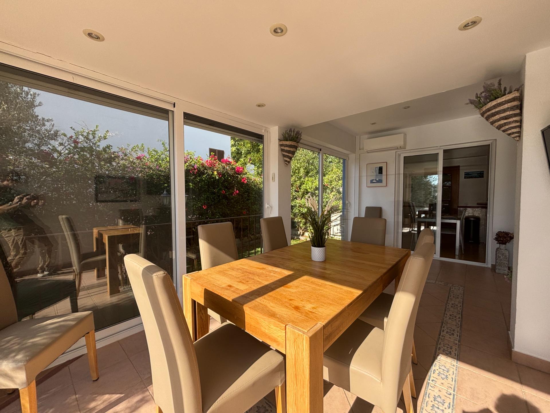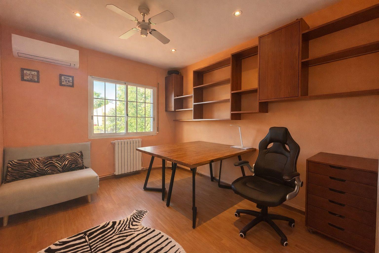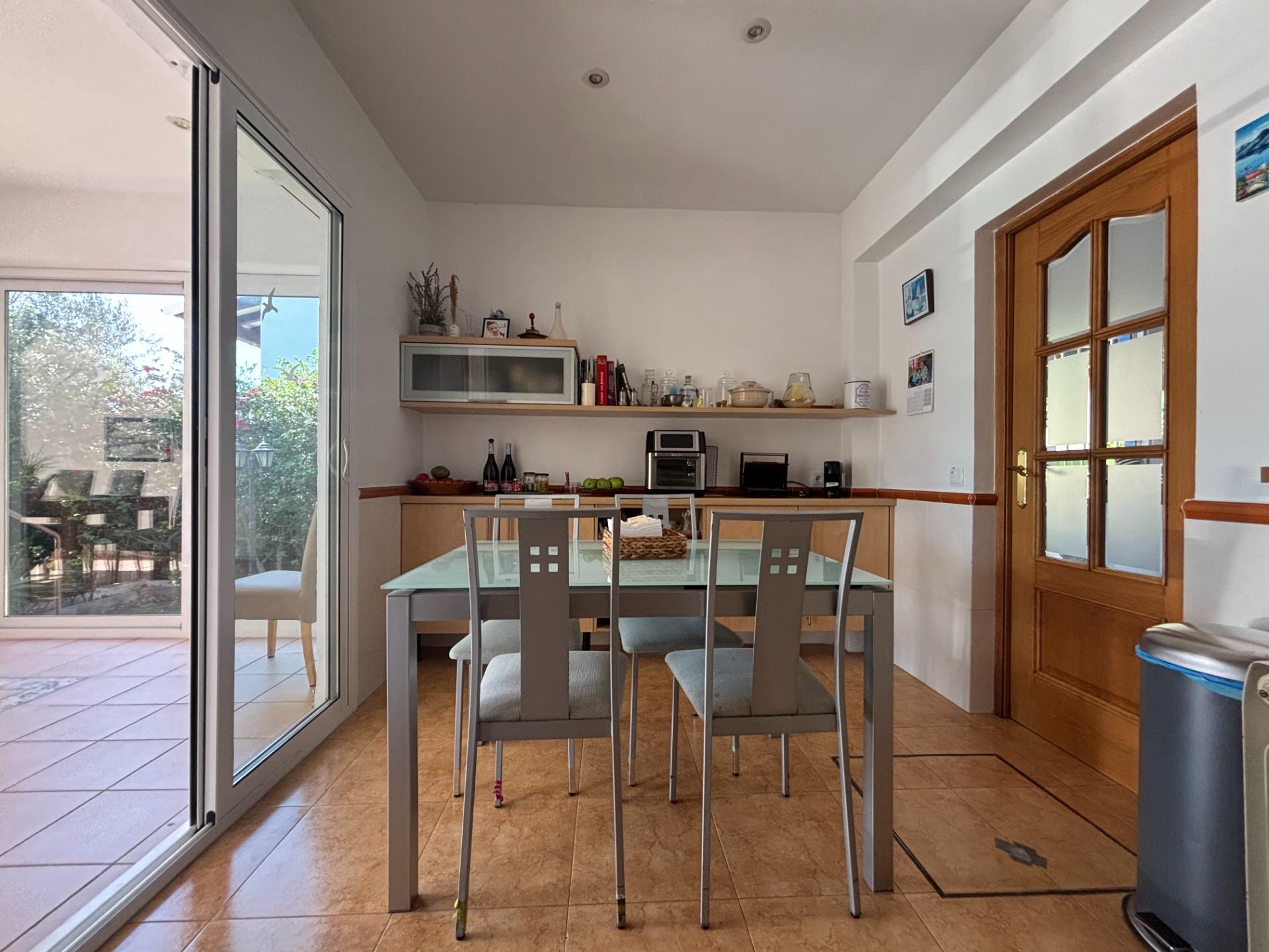 Main level: spacious living-dining room with large windows that open onto a generous terrace, perfect for relaxing or dining outdoors. From here, there is direct access to the garden and pool. On this floor there is also an independent kitchen with laundry area and storage room, with access to another terrace with a barbecue area. In addition, there is a double bedroom and a full bathroom.