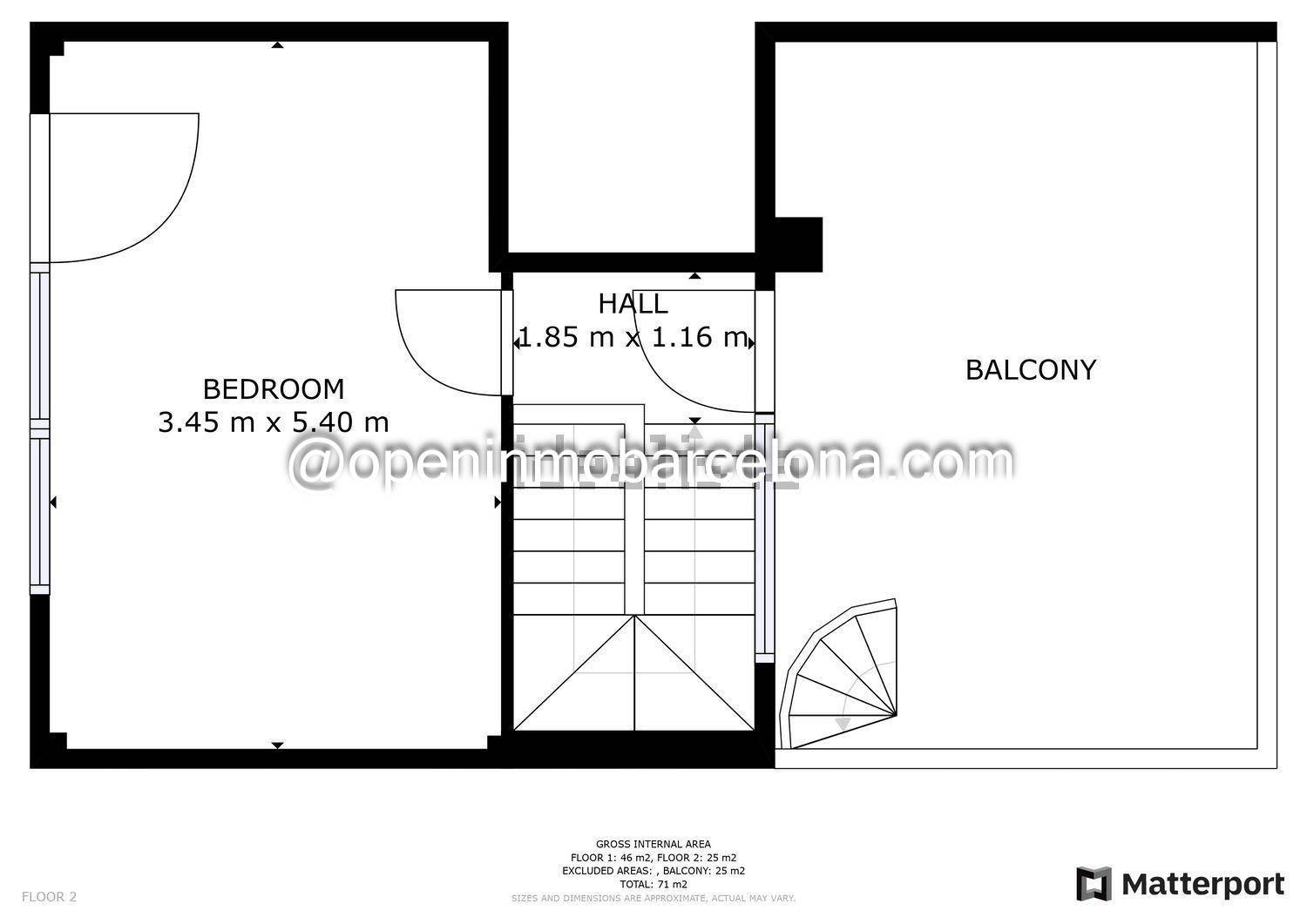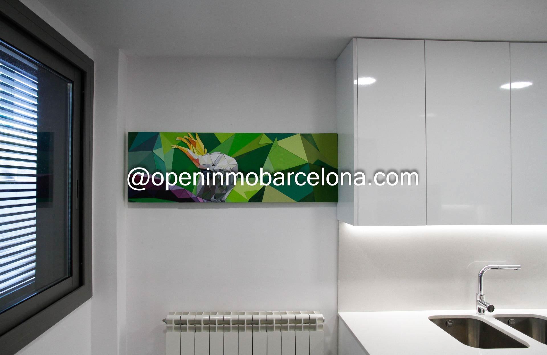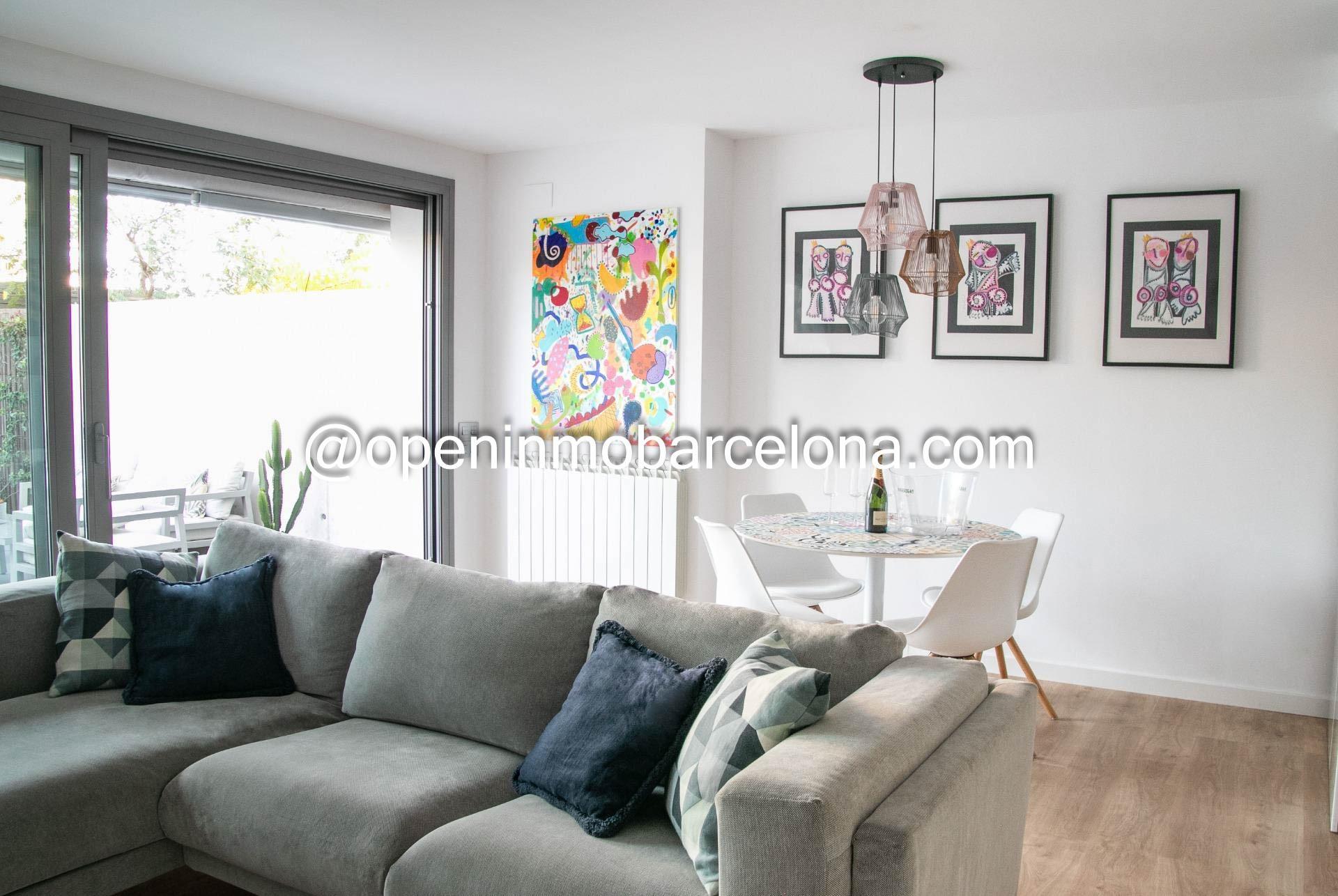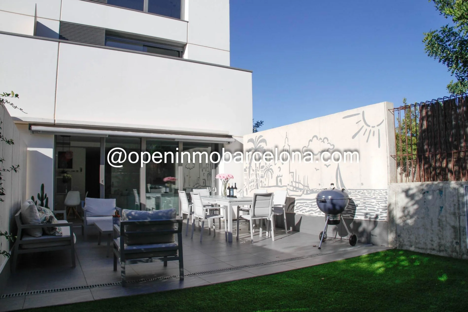On the ground floor we have a bright living-dining room decorated with large windows and access to a large 70m2 patio with a green area, a modern and independent fully equipped kitchen and a bathroom with a shower.