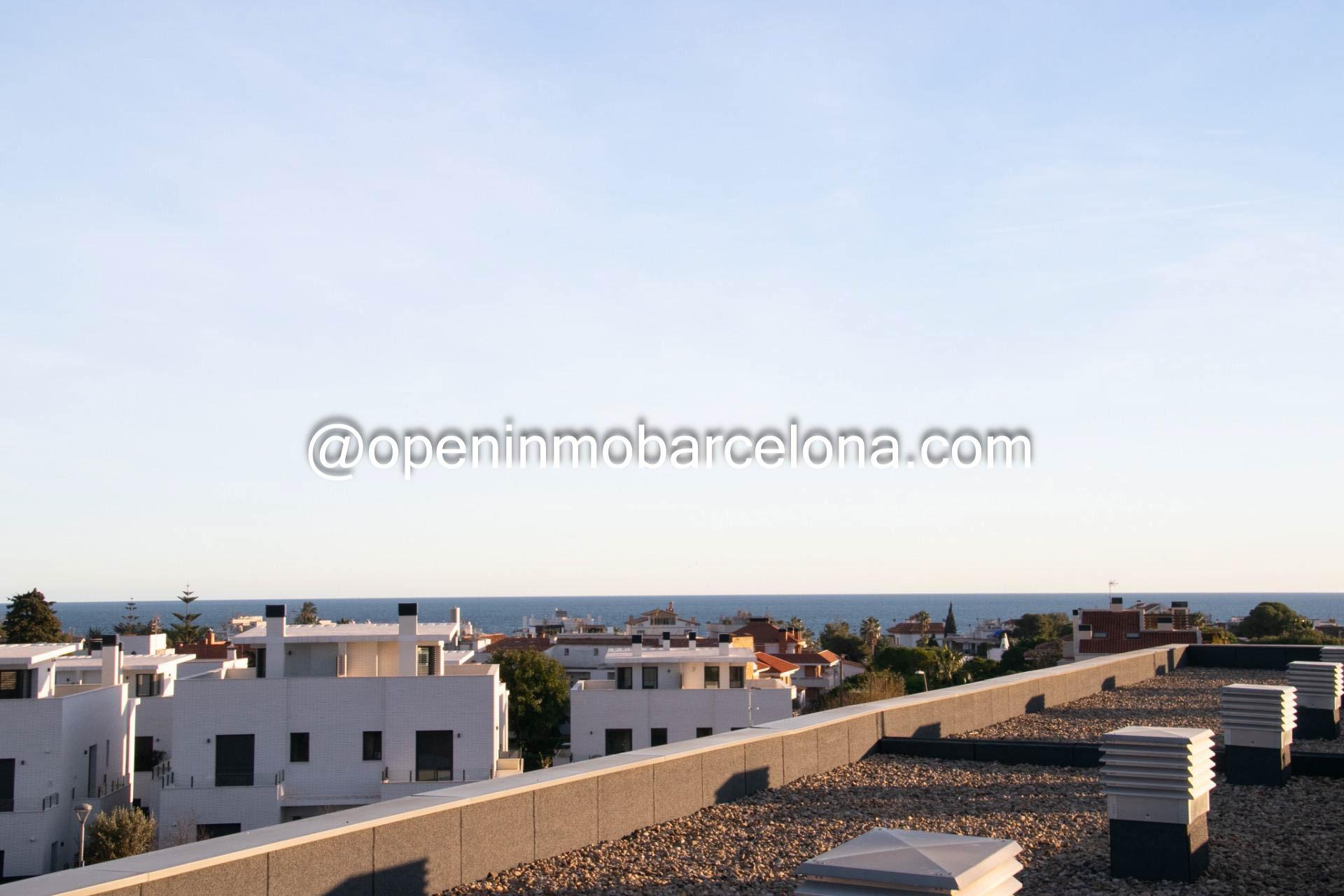 The top floor has a large double room with access to a spacious terrace with a chill-out area, from which we go up a spiral staircase to enjoy a magnificent 35m2 solarium with views of the sea and the entire town of Sitges.