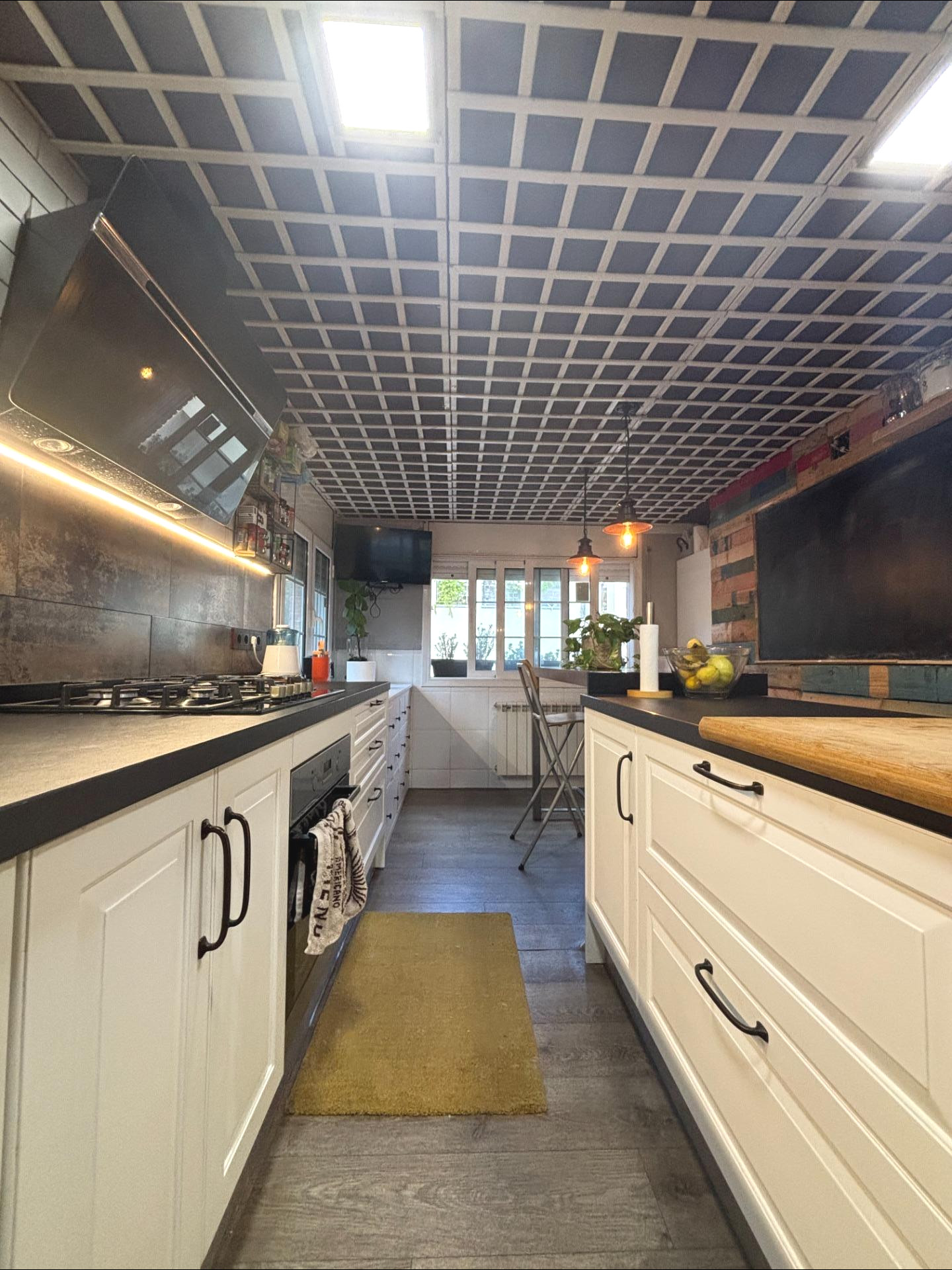 Upon entering the property, we are greeted by a bright living-dining room with direct access to the garden, ideal for relaxing or enjoying pleasant moments together. The open-plan kitchen, fully integrated, features a modern design that enhances space and visual continuity. On this same floor, there is also a guest toilet.