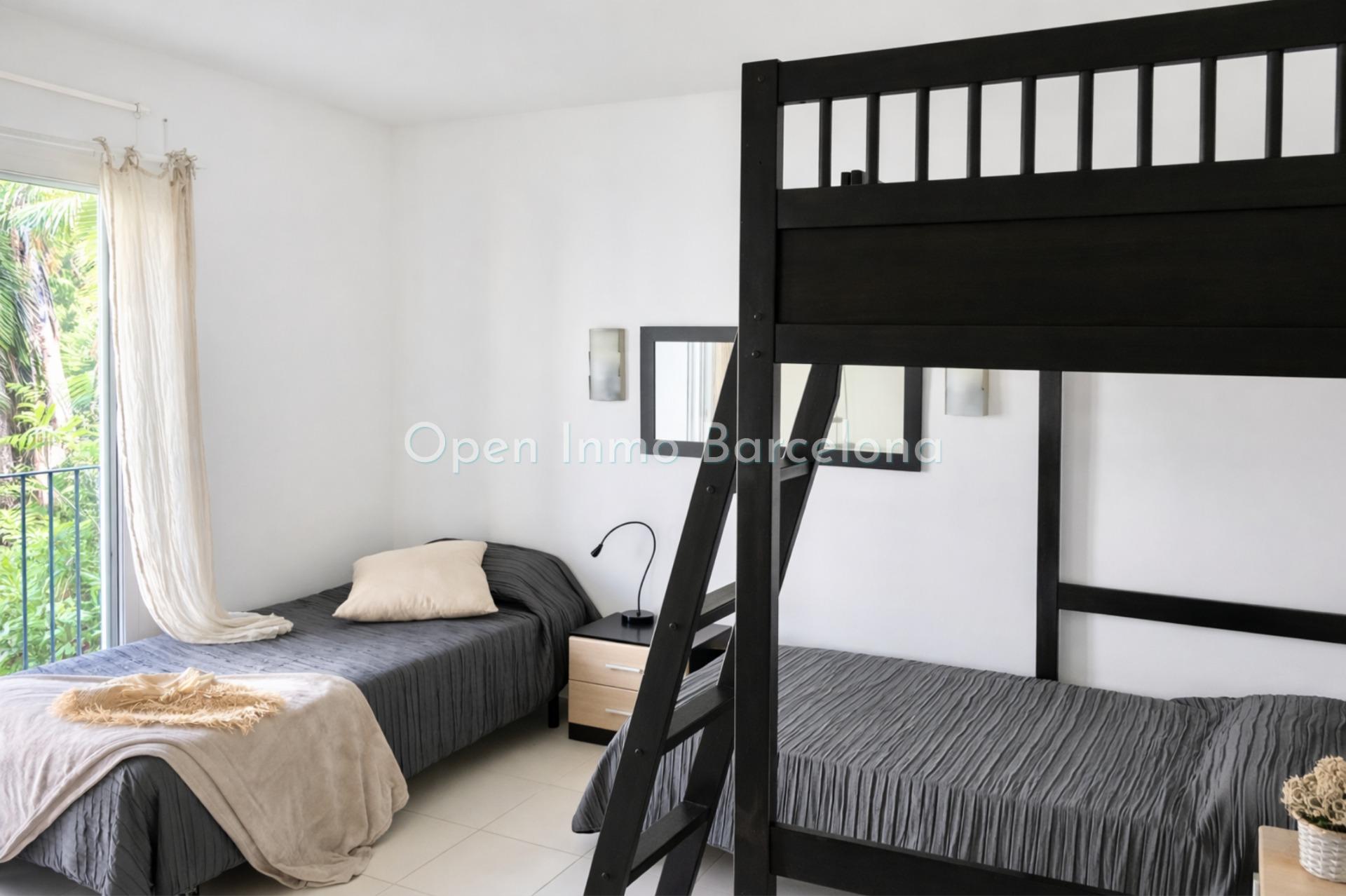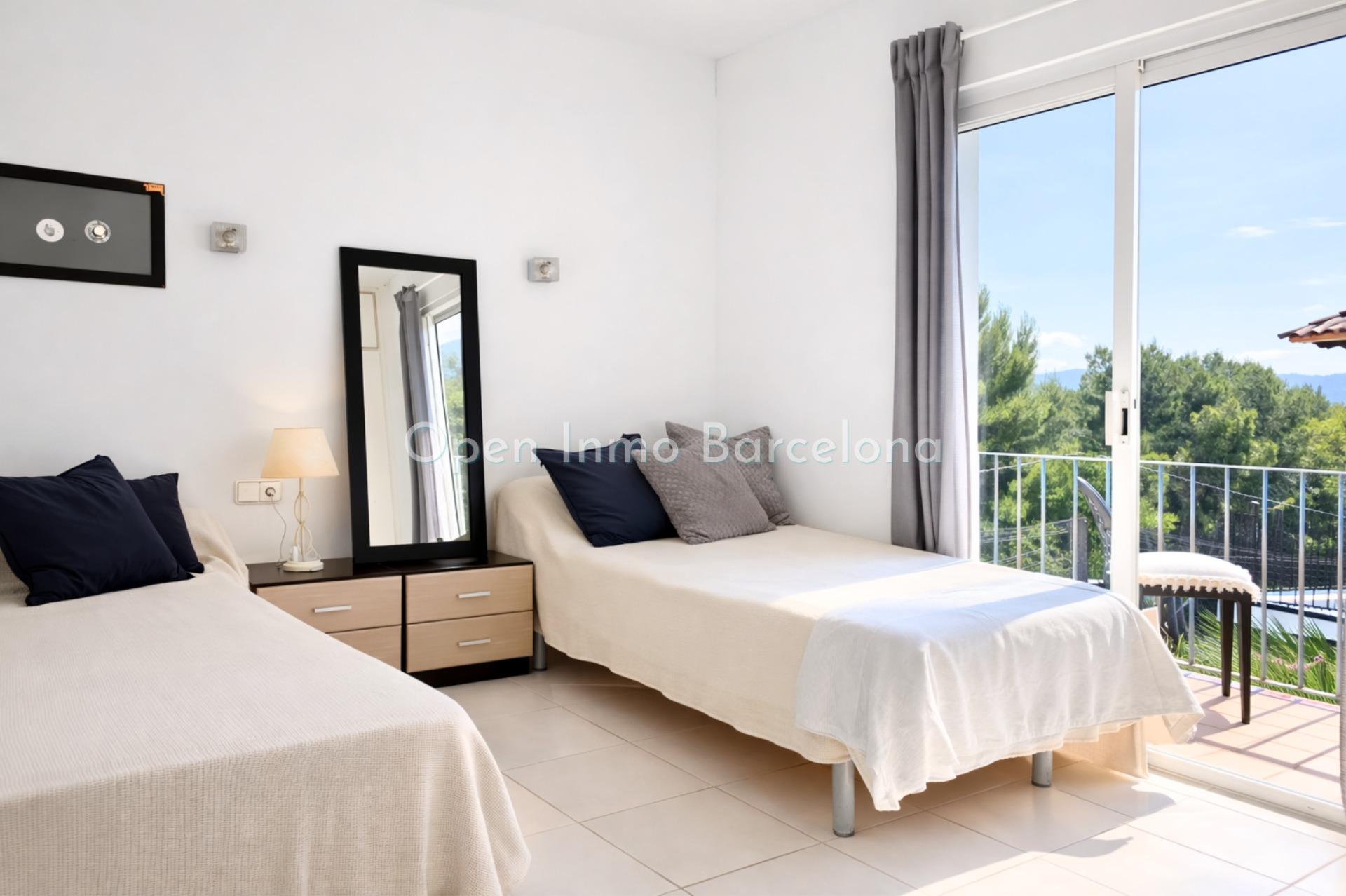 The Vallpineda neighborhood of Sitges is a quiet area year-round, with 24-hour security and proximity to international schools such as Bel.lair, Richmond, and Olive Tree, and is 35 minutes from Barcelona's El Prat International Airport.