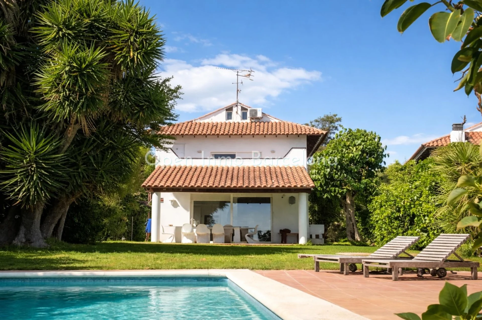 In the Vallpineda urbanization of Sitges, we have this detached house. A beautiful house with a garden, swimming pool, and terraces. The house has a garage with space for two cars. The property faces south and has sea views.