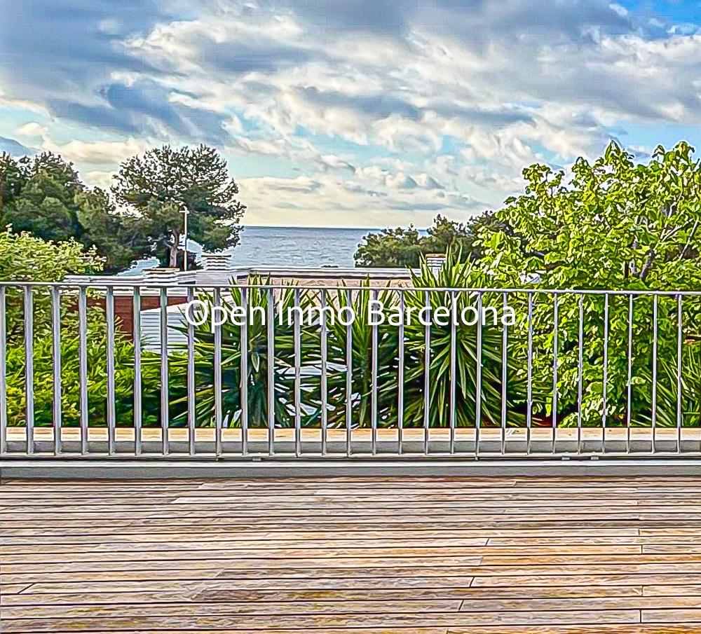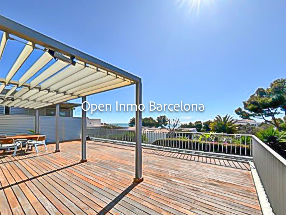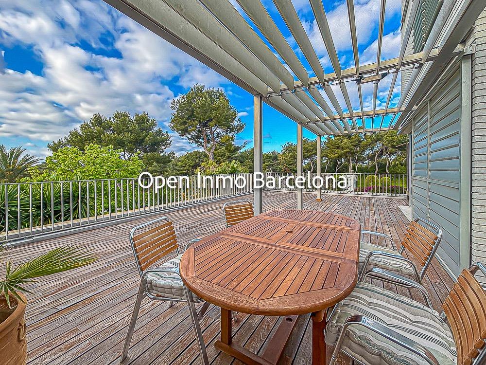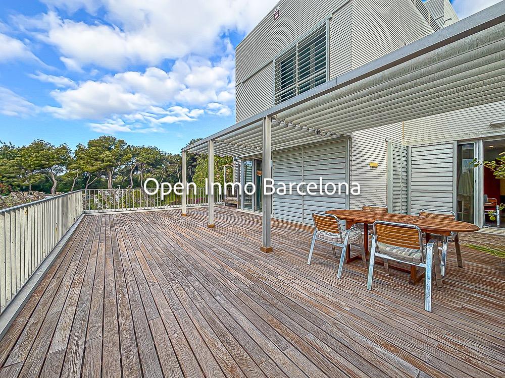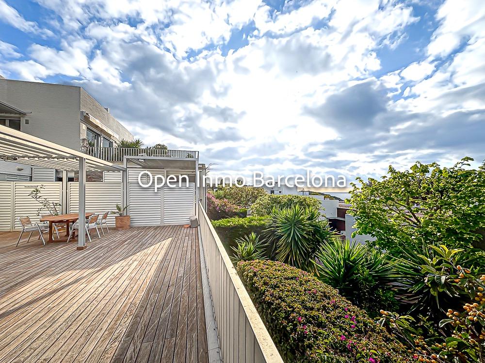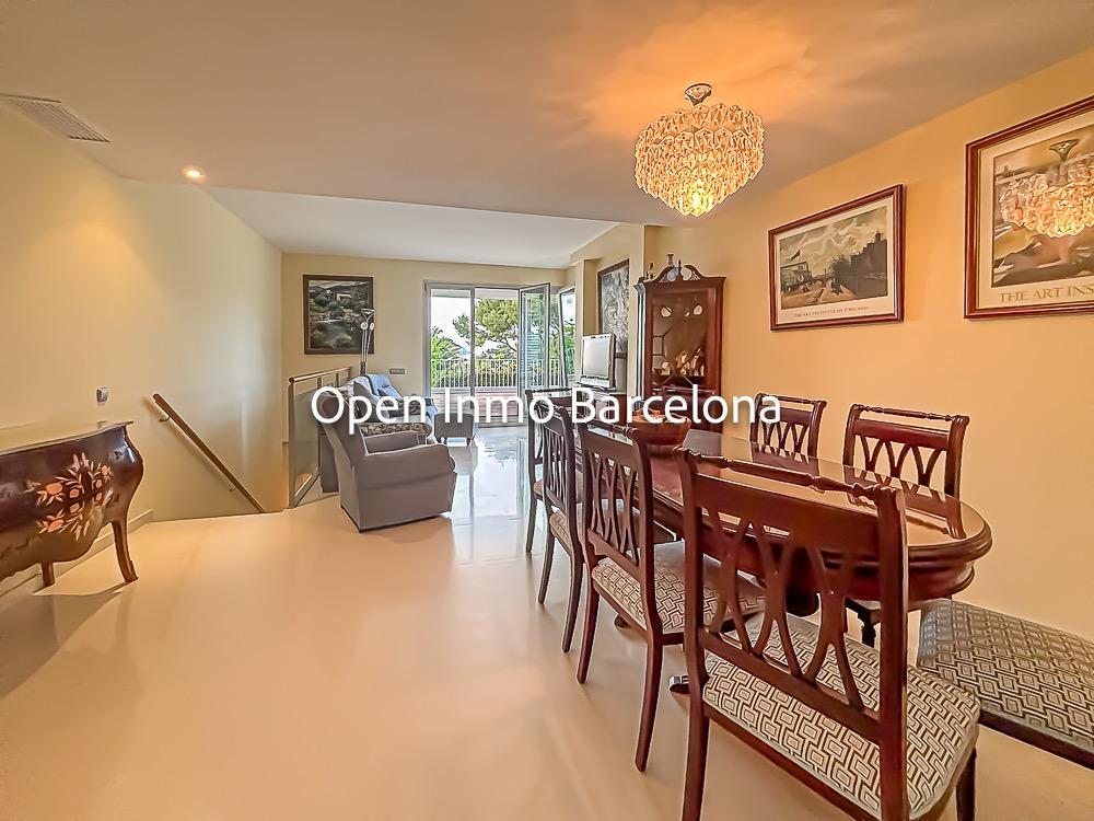 Spectacular corner duplex in the exclusive Casas del Mar Urbanization of Sant Pere de Ribes, a privileged area of Garraf with views of the sea and a swath of forests. A fantastic 216-meter duplex, which stands out for its views and luminosity in all its rooms. On the first floor, we find a large, very bright 30-meter living room with access to a large 70-meter terrace with wonderful views of the sea and the forest, a separate kitchen, a guest toilet and a storage-laundry room. On the lower floor, we find five bedrooms, two of them doubles, a suite with bathroom and two single bedrooms, all with direct access to the private garden. On this floor we also find another full bathroom.