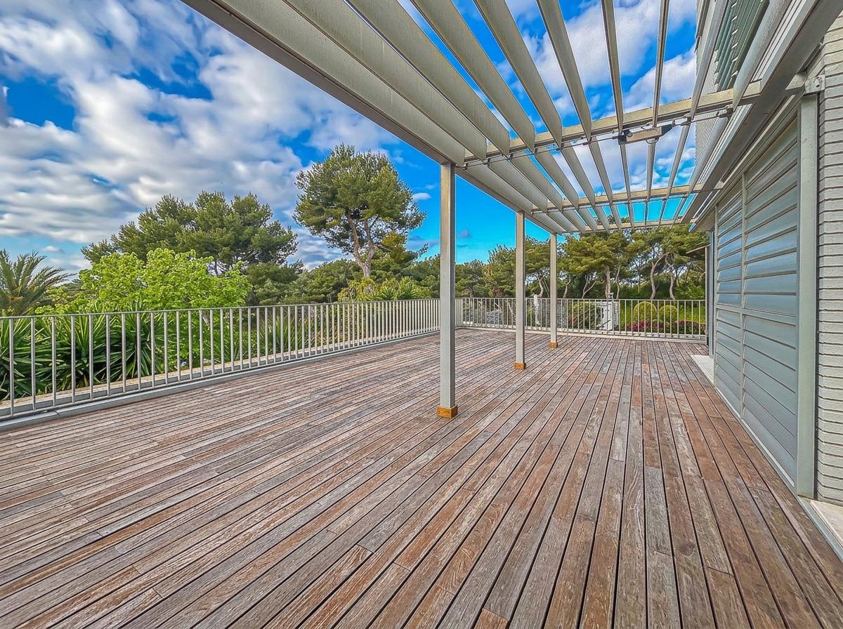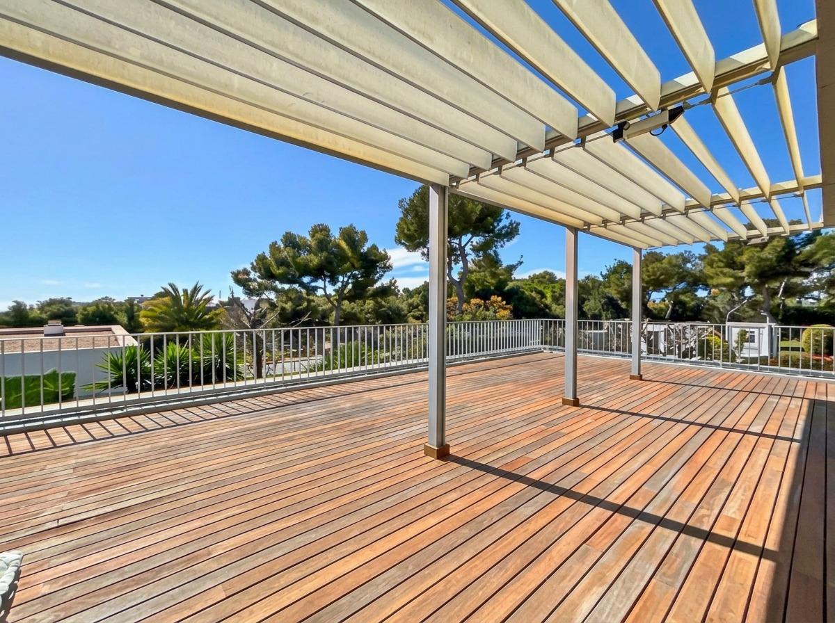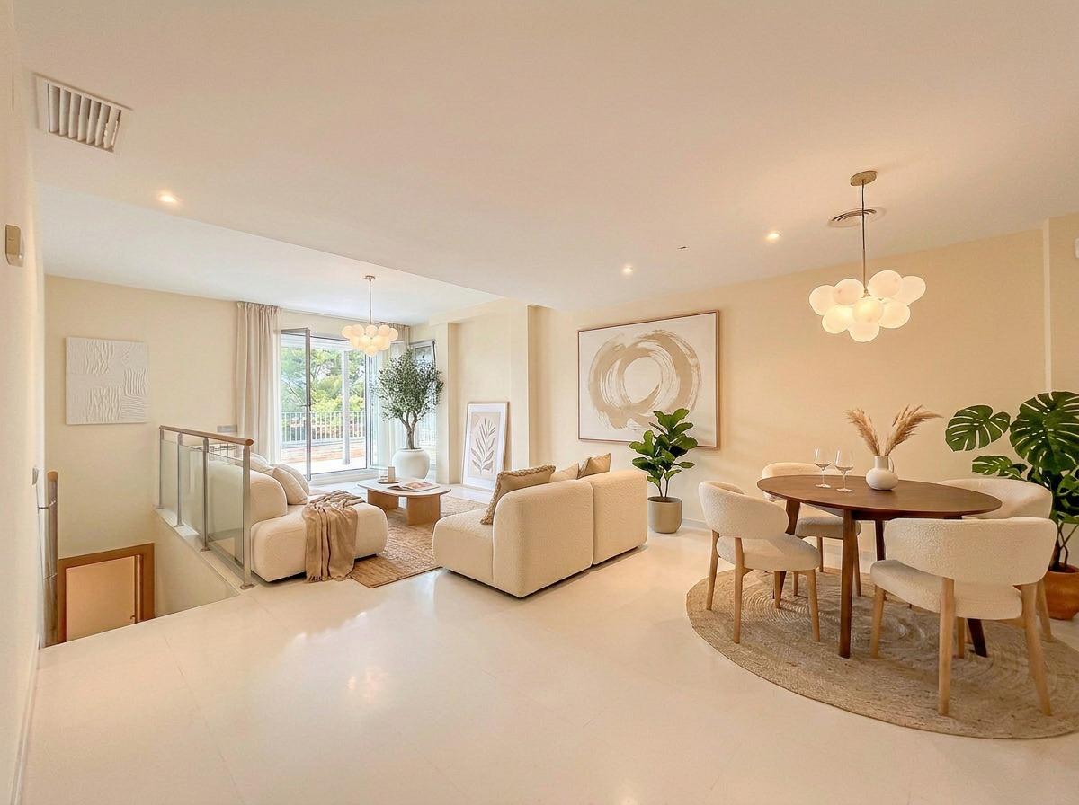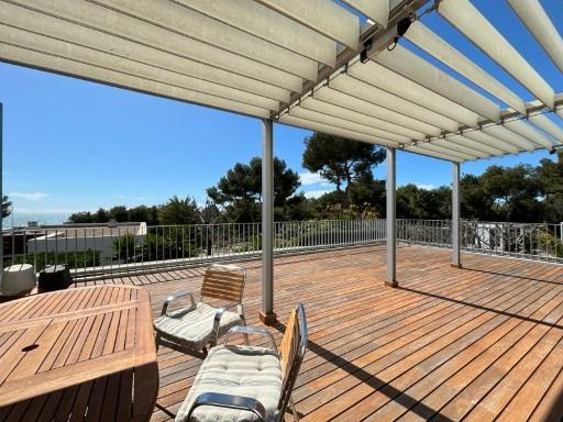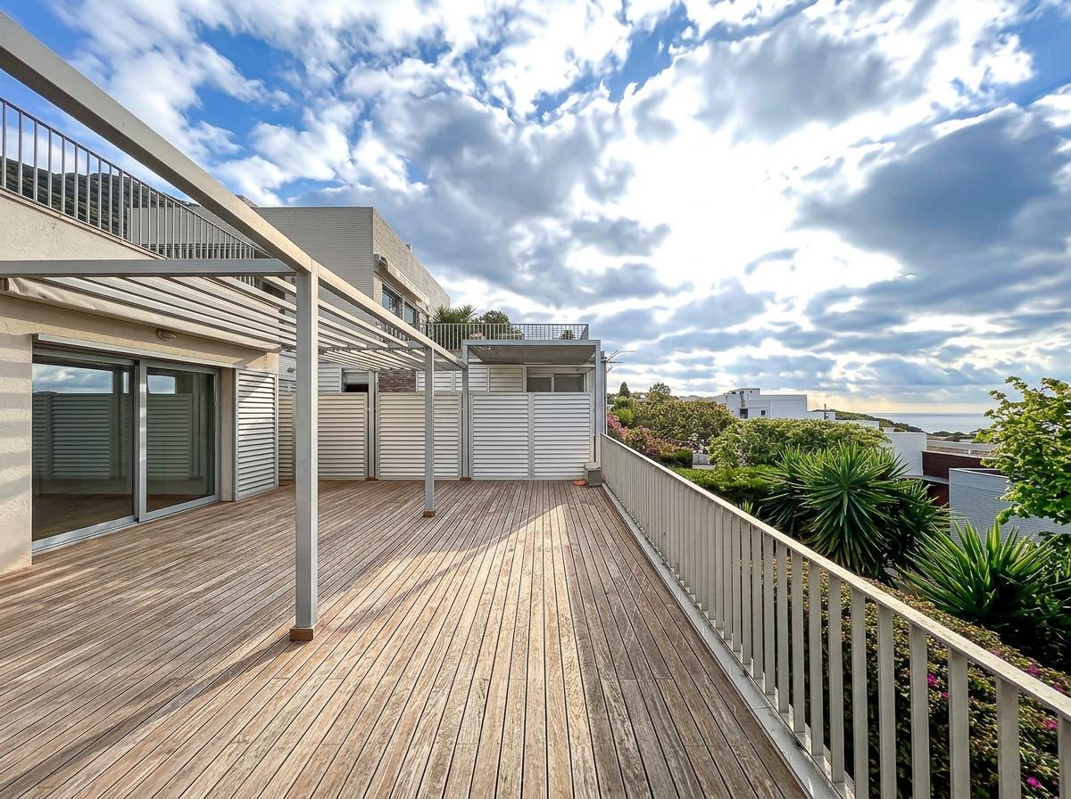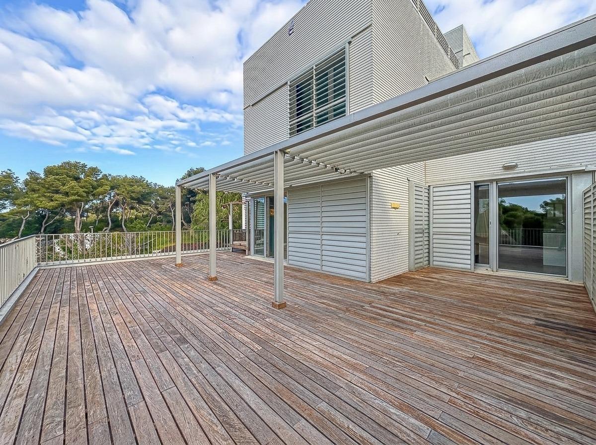 Spectacular corner duplex in the exclusive Casas del Mar Urbanization of Sant Pere de Ribes, a privileged area of Garraf with views of the sea and a swath of forests. A fantastic 216-meter duplex, which stands out for its views and luminosity in all its rooms. On the first floor, we find a large, very bright 30-meter living room with access to a large 70-meter terrace with wonderful views of the sea and the forest, a separate kitchen, a guest toilet and a storage-laundry room. On the lower floor, we find five bedrooms, two of them doubles, a suite with bathroom and two single bedrooms, all with direct access to the private garden. On this floor we also find another full bathroom.