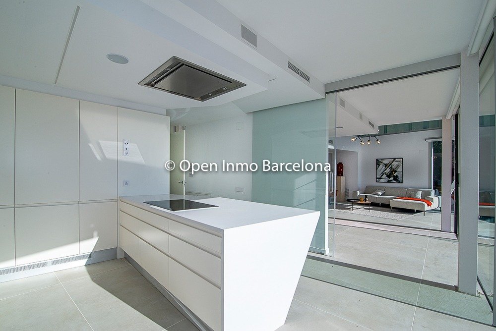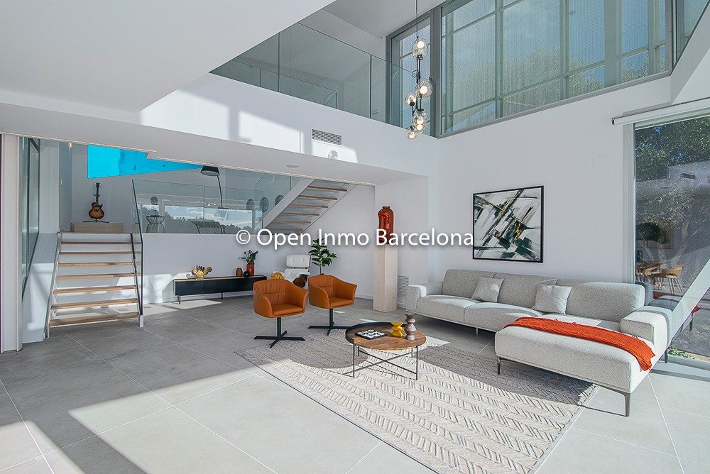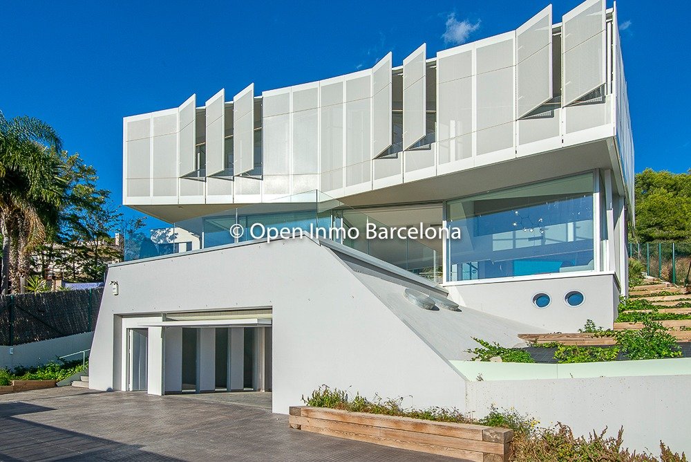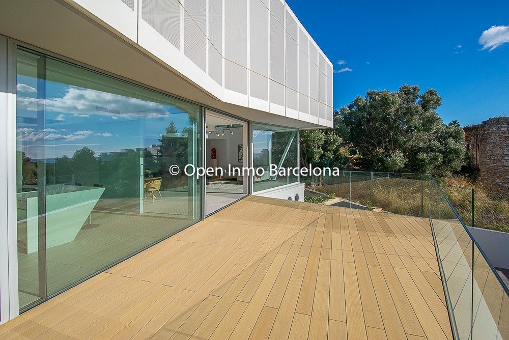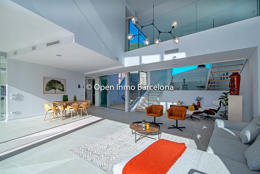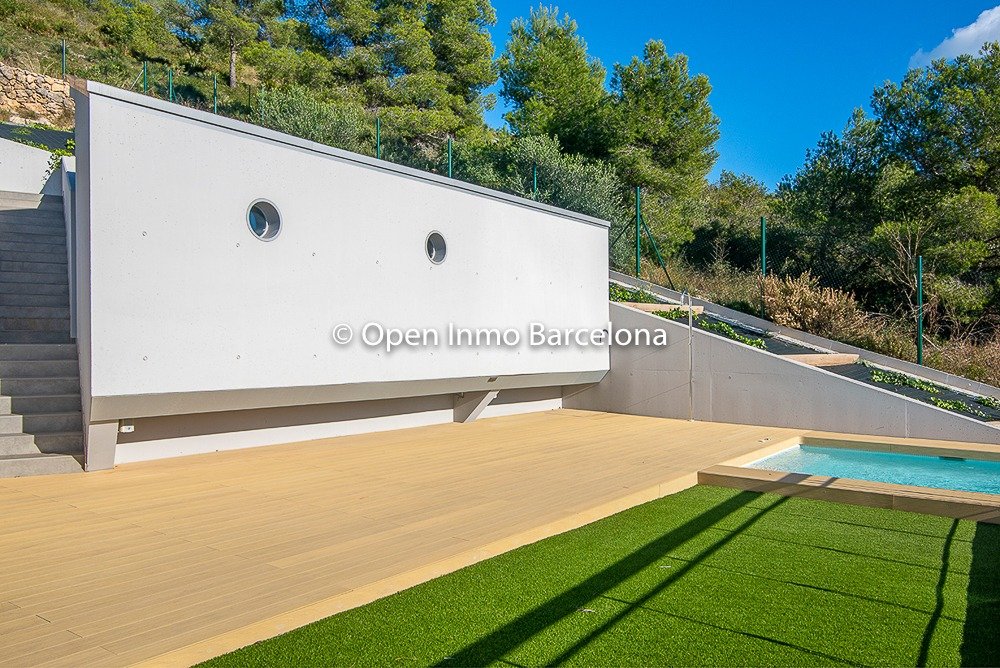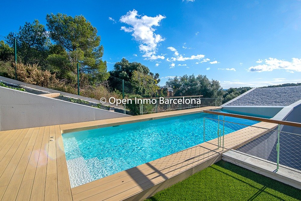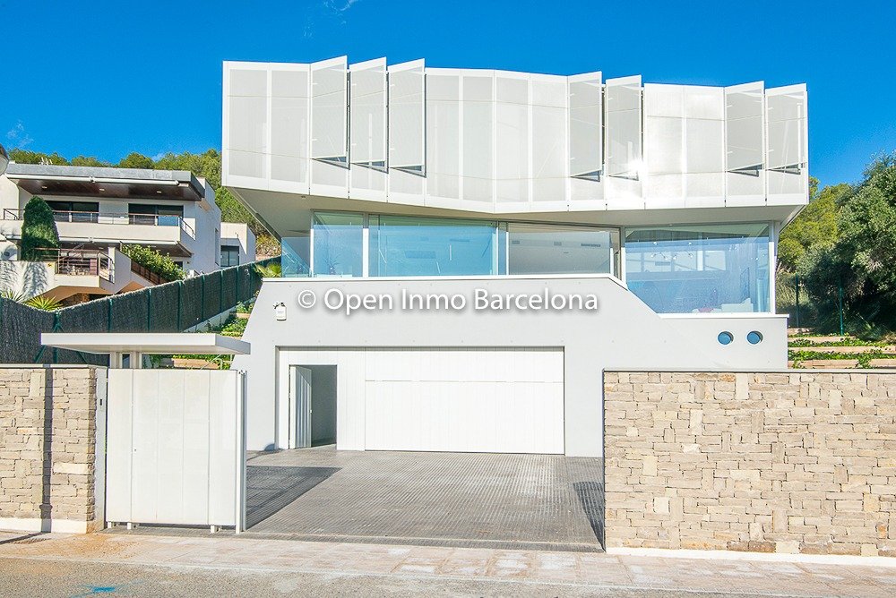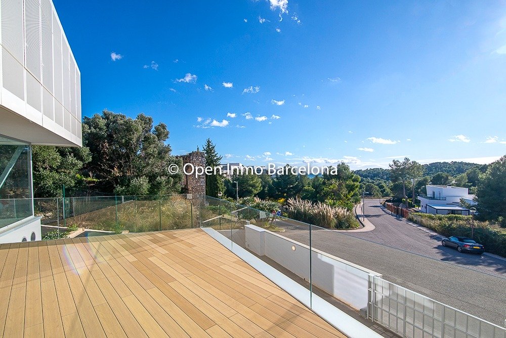 Brand new villa in Sitges Can Girona, built in 2019, on a 1436m2 plot, and distributed over two floors plus a basement. In the basement we find a garage for four cars, storage room, laundry room, machine room and cellar. It has 395m2 useful and 466m2 built, with elevator. Swimming pool with chill-out area, dressing room and bathroom on the top floor with garden areas. In a modern style with white dominating all the spaces, diaphanous full of light and sea views. 80m2 living room with open kitchen and room as an office with views of the pool, which lead to the terrace. Four double bedrooms, three of them en suite. The heating and air conditioning is by aerothermal. The house has four-pane glass windows, gray porcelain and wood floors, fitted wardrobes, piped music, alarm. Domotics. The house is located in the area of ​​the Terramar Golf Club in Sitges, International Schools: British School of Barcelona (BSB) a few minutes by car, school bus nearby. Olive Tree , Richmond and Bel Air less than 10 minutes drive. Luxury Villa with sea views in Sitges.
