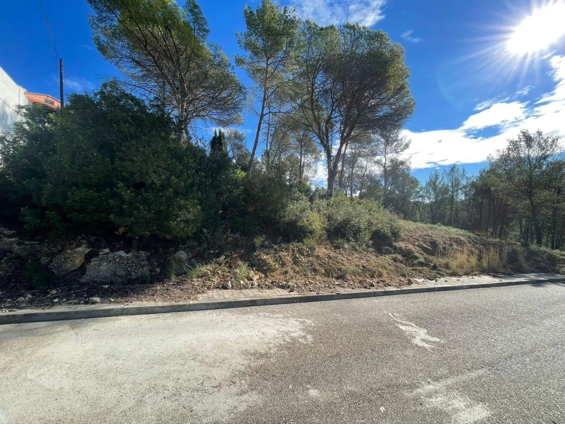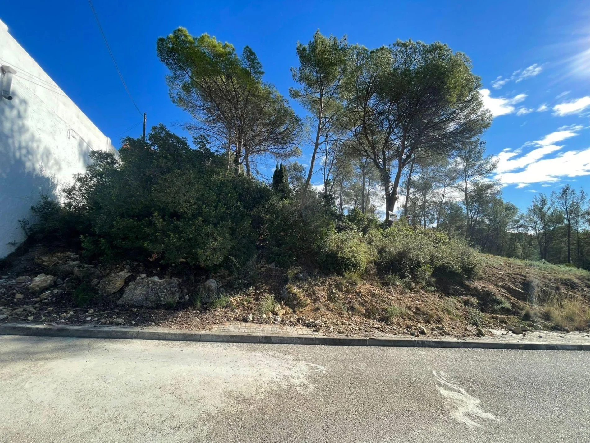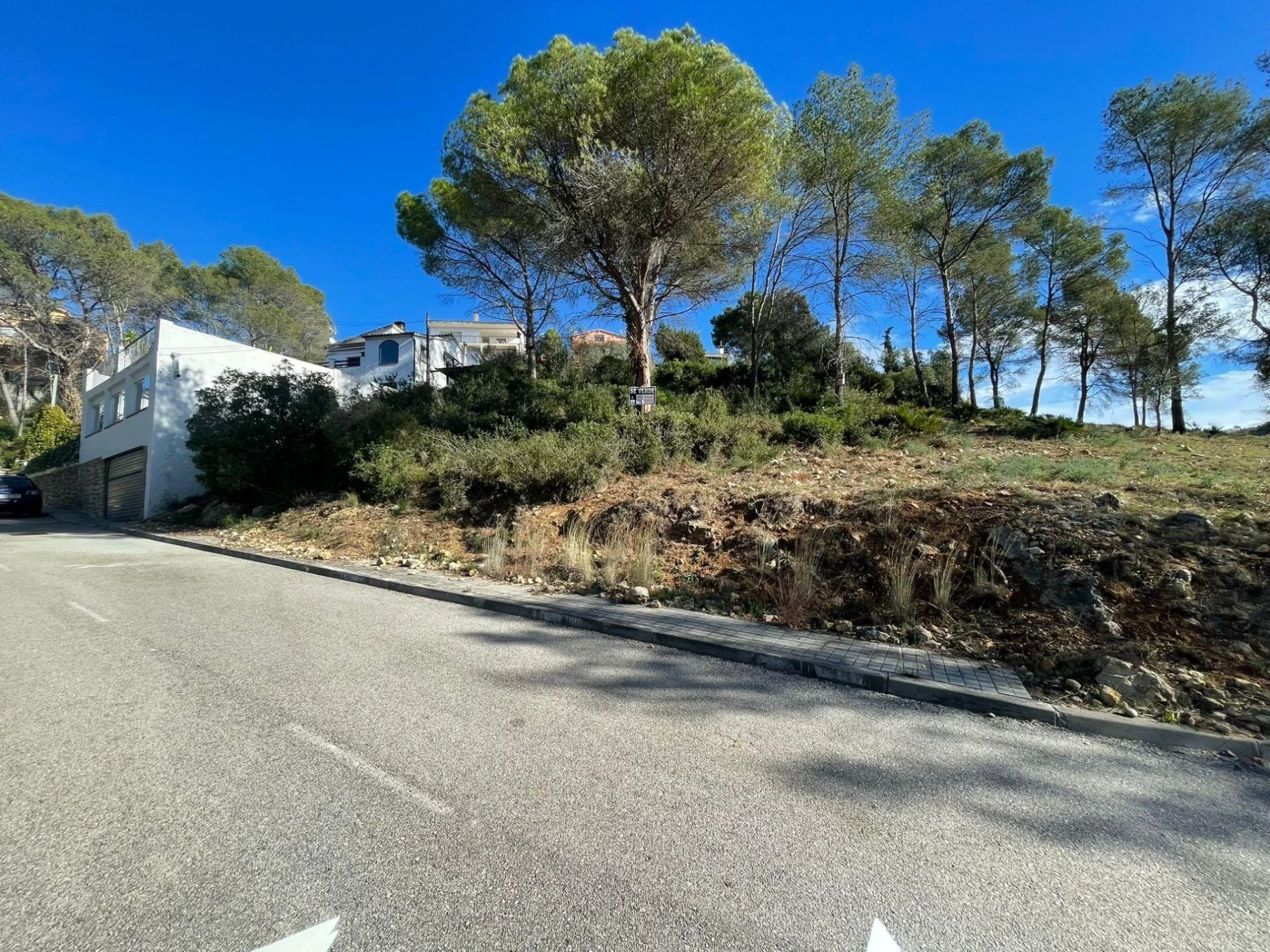 It is located in the Las Colinas urbanization with an upward slope, green area in front and on the side, south facing. Road infrastructure completed such as: streetlights, sidewalks, paved road, rainwater drains, running water and electricity. Just 4 minutes from Más Milà with all kinds of services and shops, 14 minutes from Sant Pere de Ribes and 20' from Sitges.
