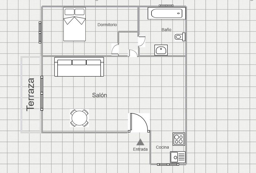 The apartment consists of 1 double bedroom, a full bathroom with a bathtub, a large living room with access to the balcony and an open kitchen to the dining room.