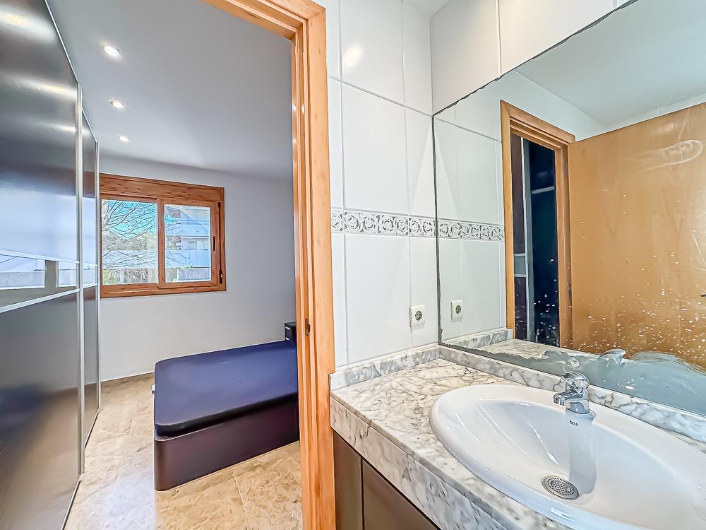 The ground floor also has an additional large bedroom, designed to adapt to the needs of a large family or to receive guests. This bedroom has large built-in wardrobes that offer generous storage space, ensuring order and comfort. Next to it, there is a full bathroom, ensuring that all occupants of the house can enjoy maximum comfort and privacy.