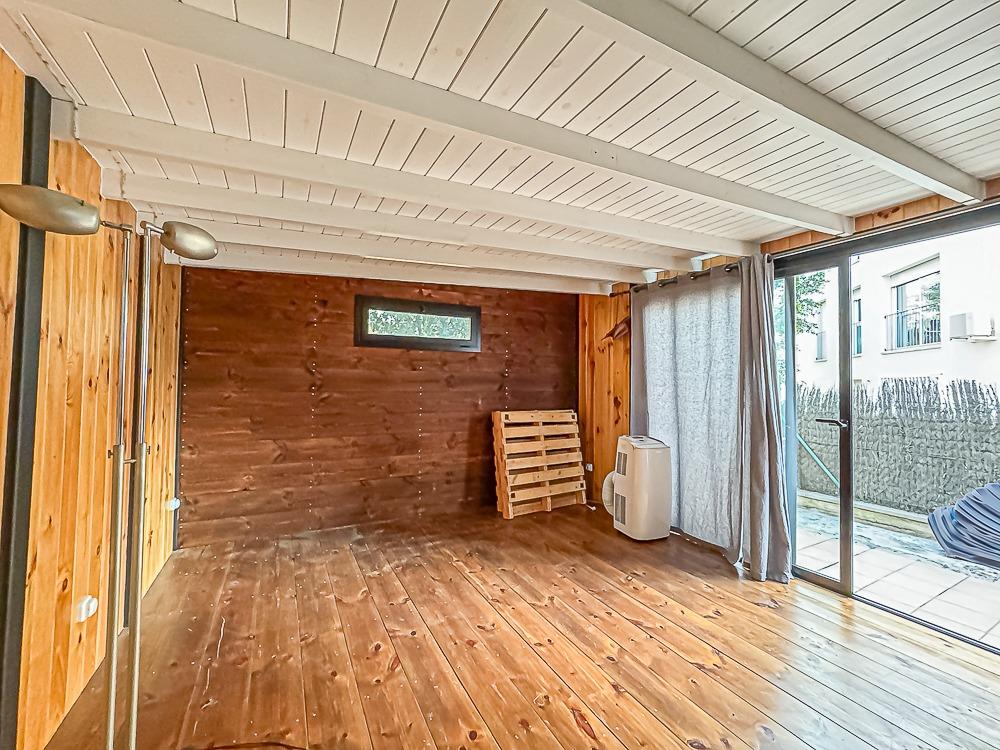 The kitchen, independent and fully equipped with modern appliances, is presented as a functional and practical space, ideal for preparing delicious meals. From the kitchen, there is access to a wooden house located outside, which further expands the possibilities of use of the home.