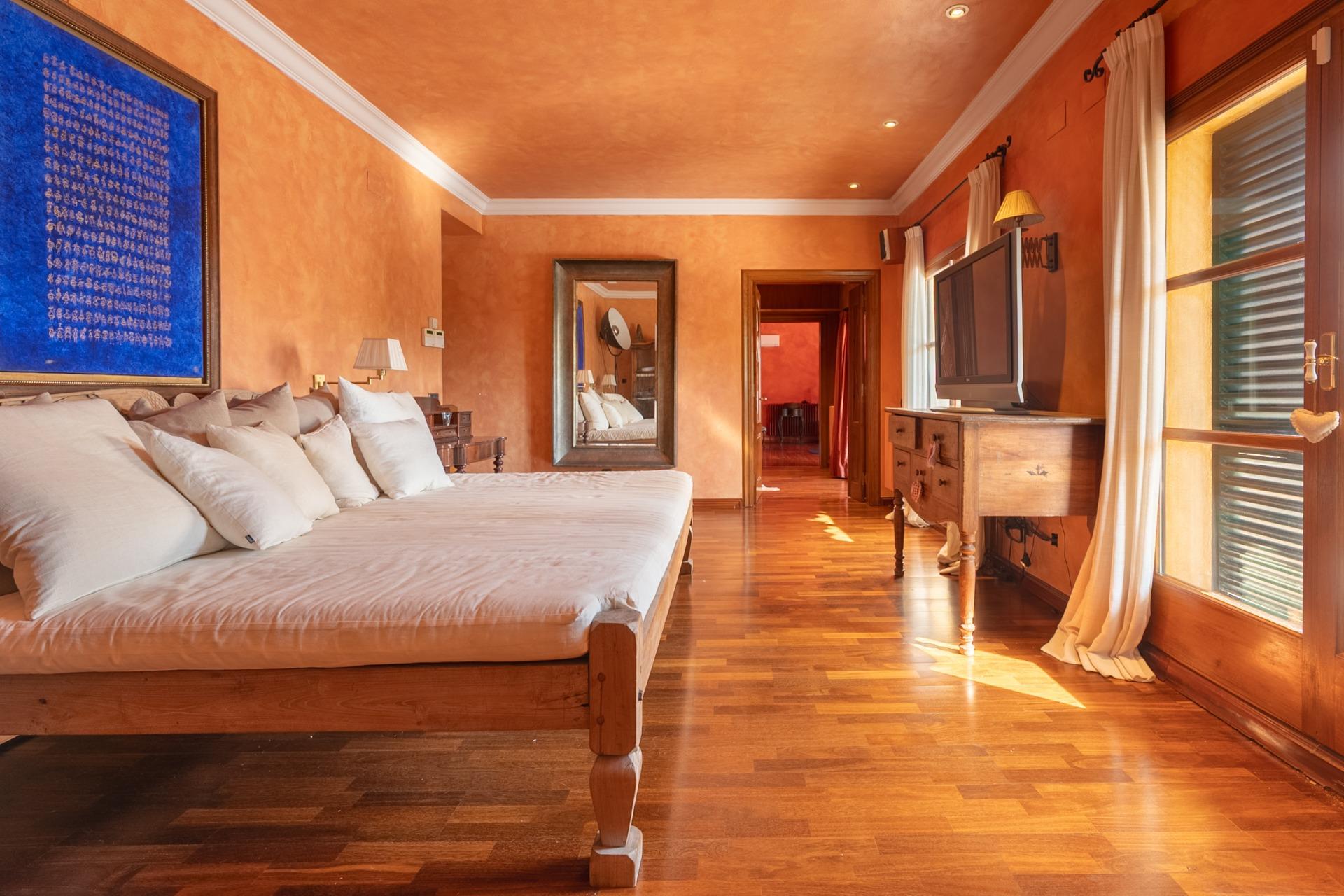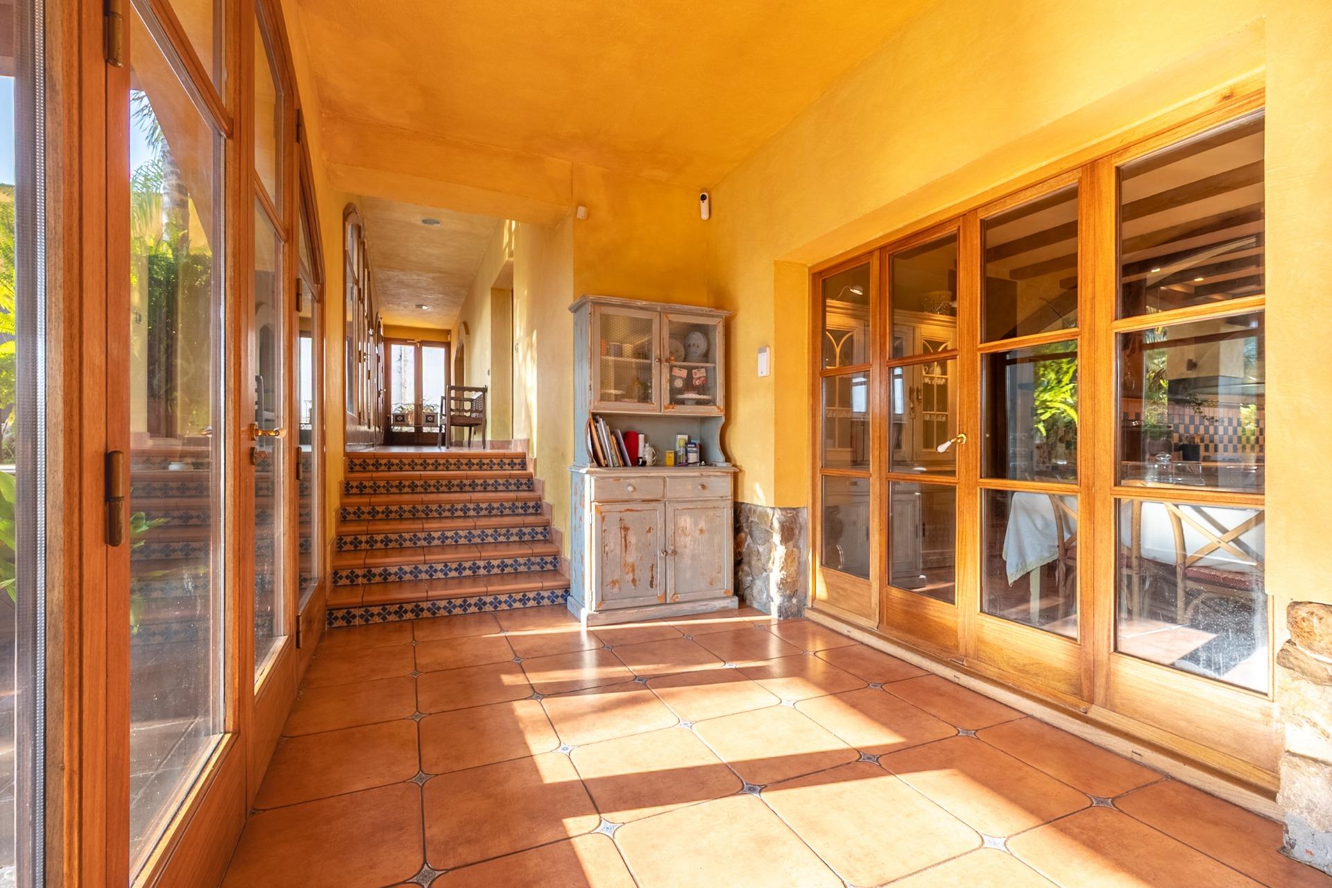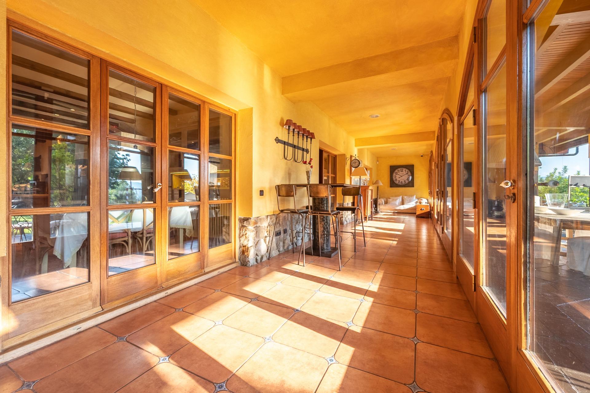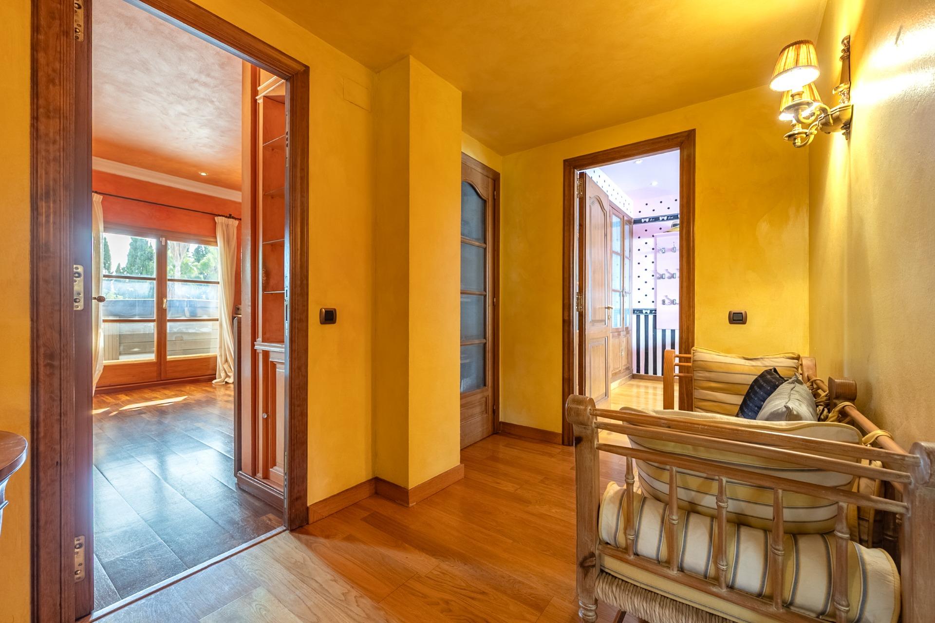 En la planta principal, un amplio hall da la bienvenida y conecta con un gran salón biblioteca, un comedor de 100 m² y una espaciosa cocina de 100 m². En esta misma planta se encuentra un segundo salón con chimenea y billar, así como un fantástico porche con zonas de comedor, estar y chill-out. Además, dispone de un comedor de verano acristalado con vistas al jardín.