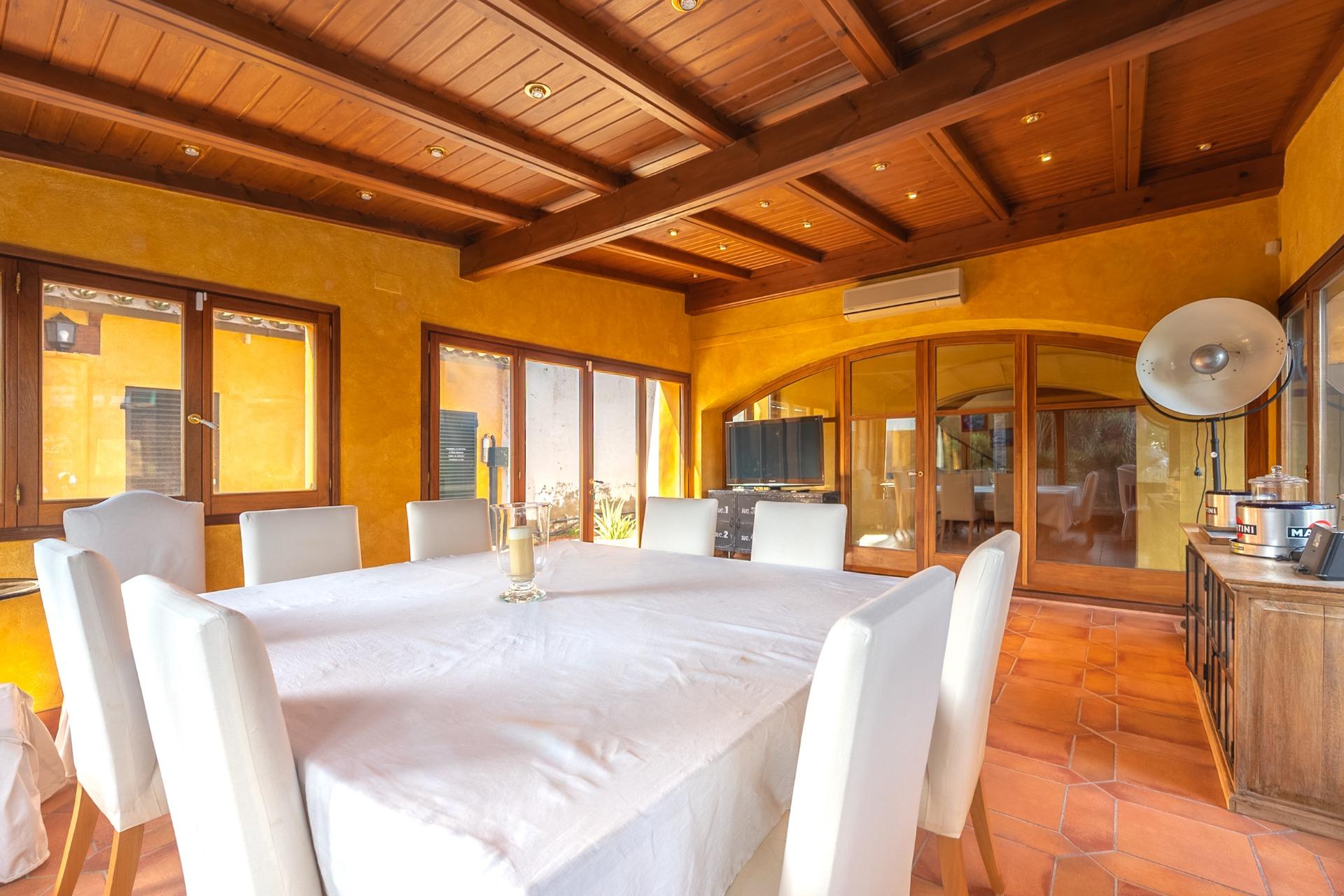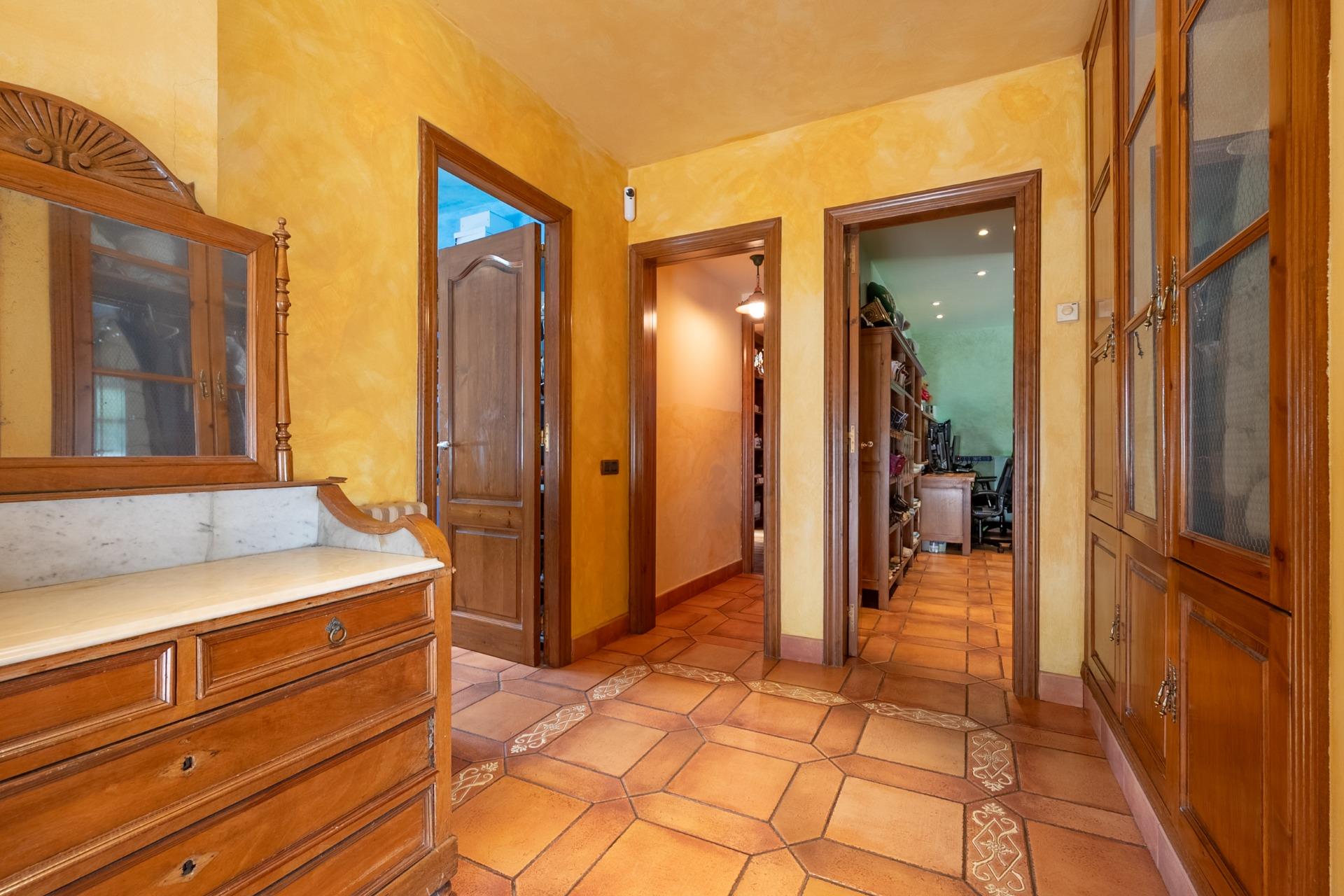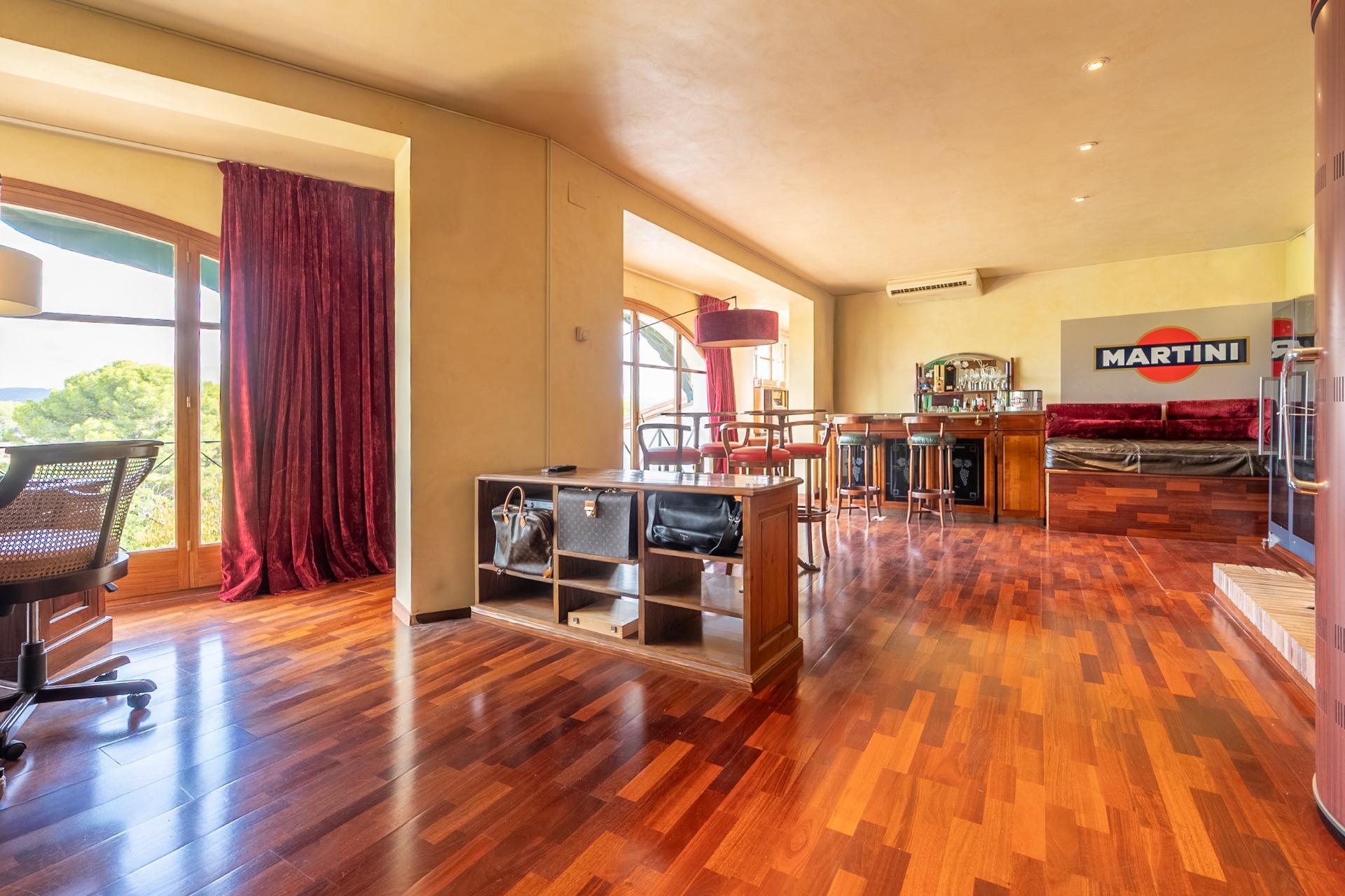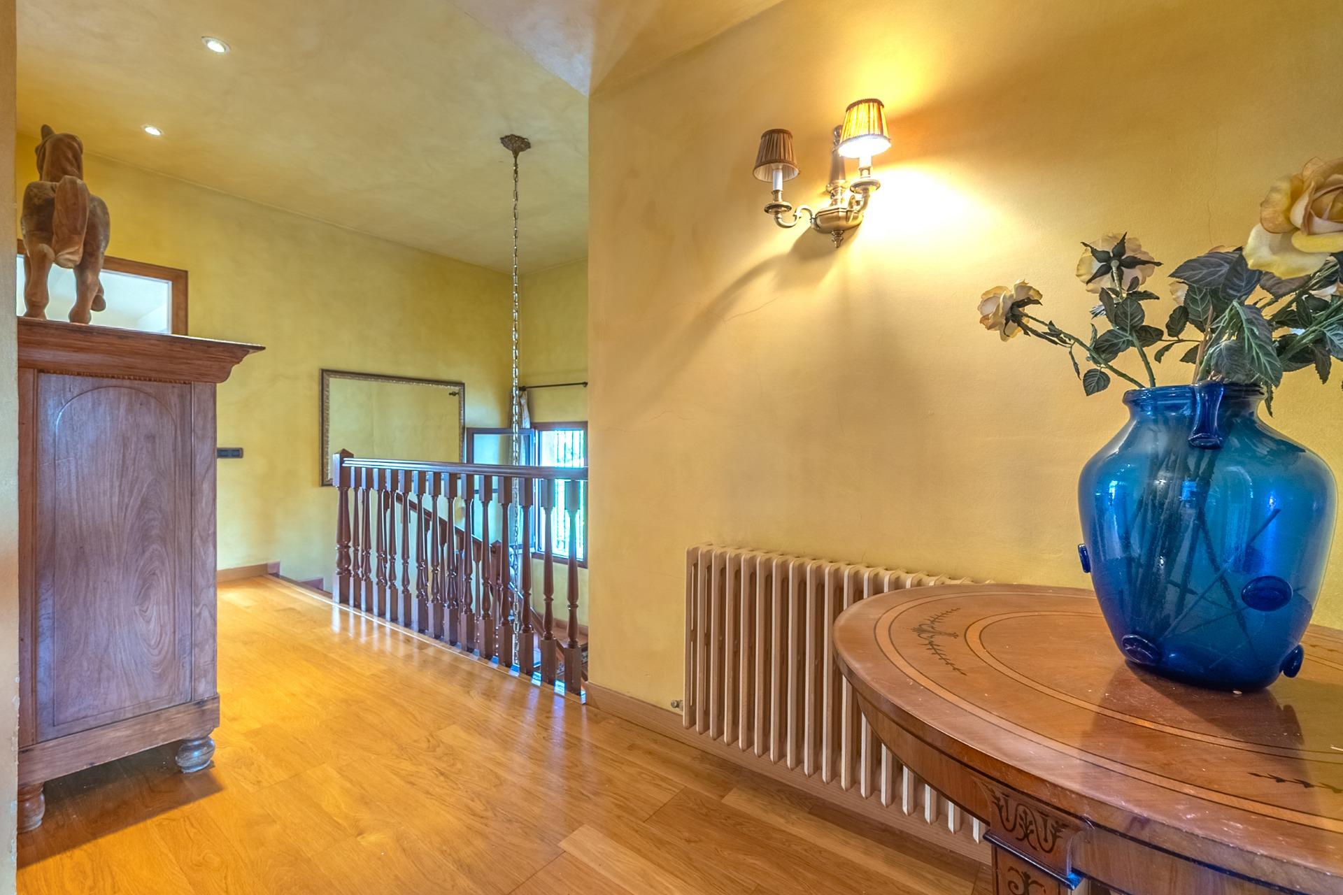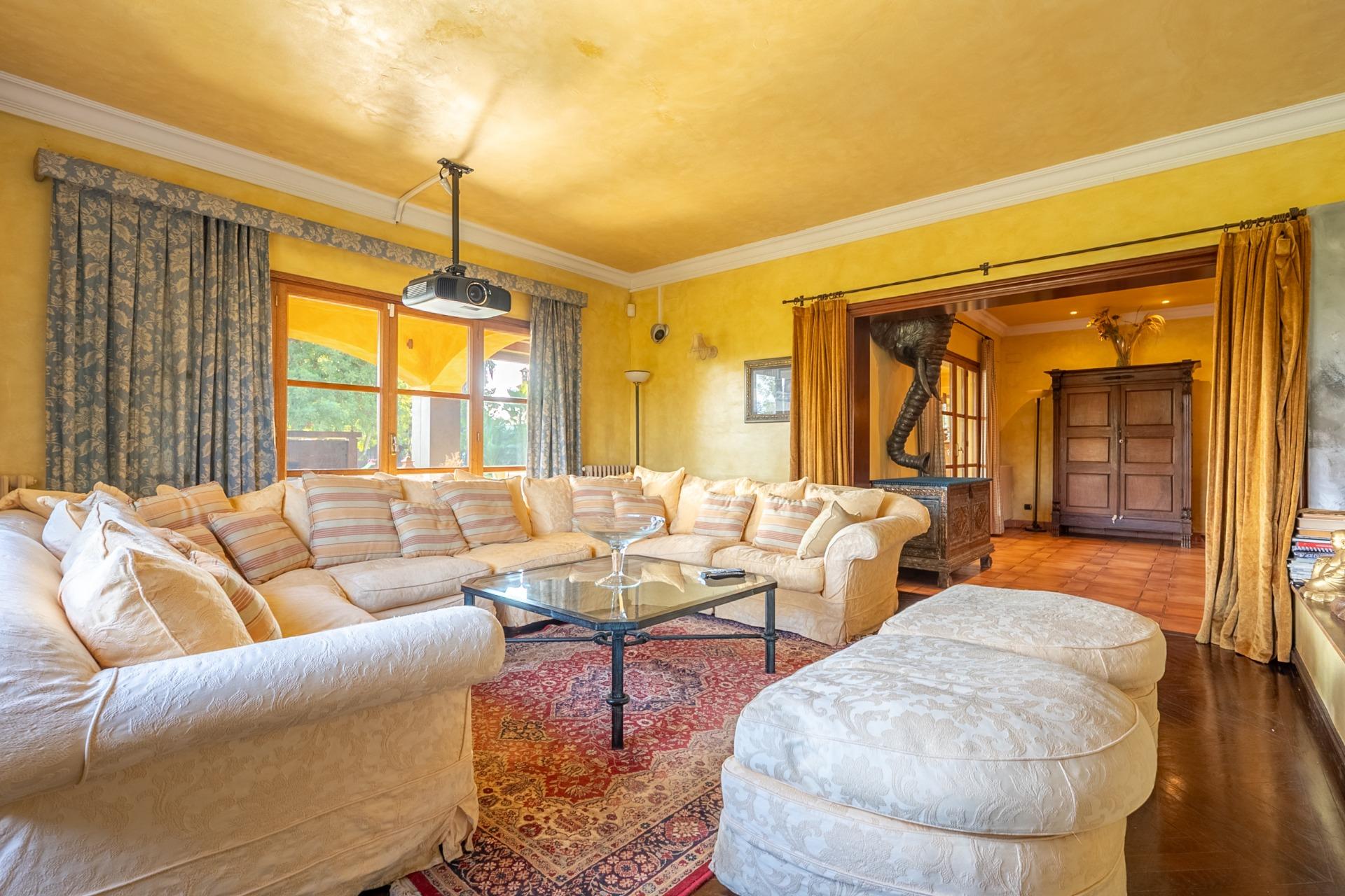 En la planta principal, un amplio hall da la bienvenida y conecta con un gran salón biblioteca, un comedor de 100 m² y una espaciosa cocina de 100 m². En esta misma planta se encuentra un segundo salón con chimenea y billar, así como un fantástico porche con zonas de comedor, estar y chill-out. Además, dispone de un comedor de verano acristalado con vistas al jardín.