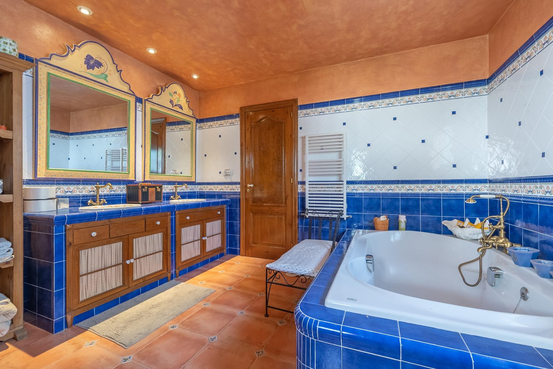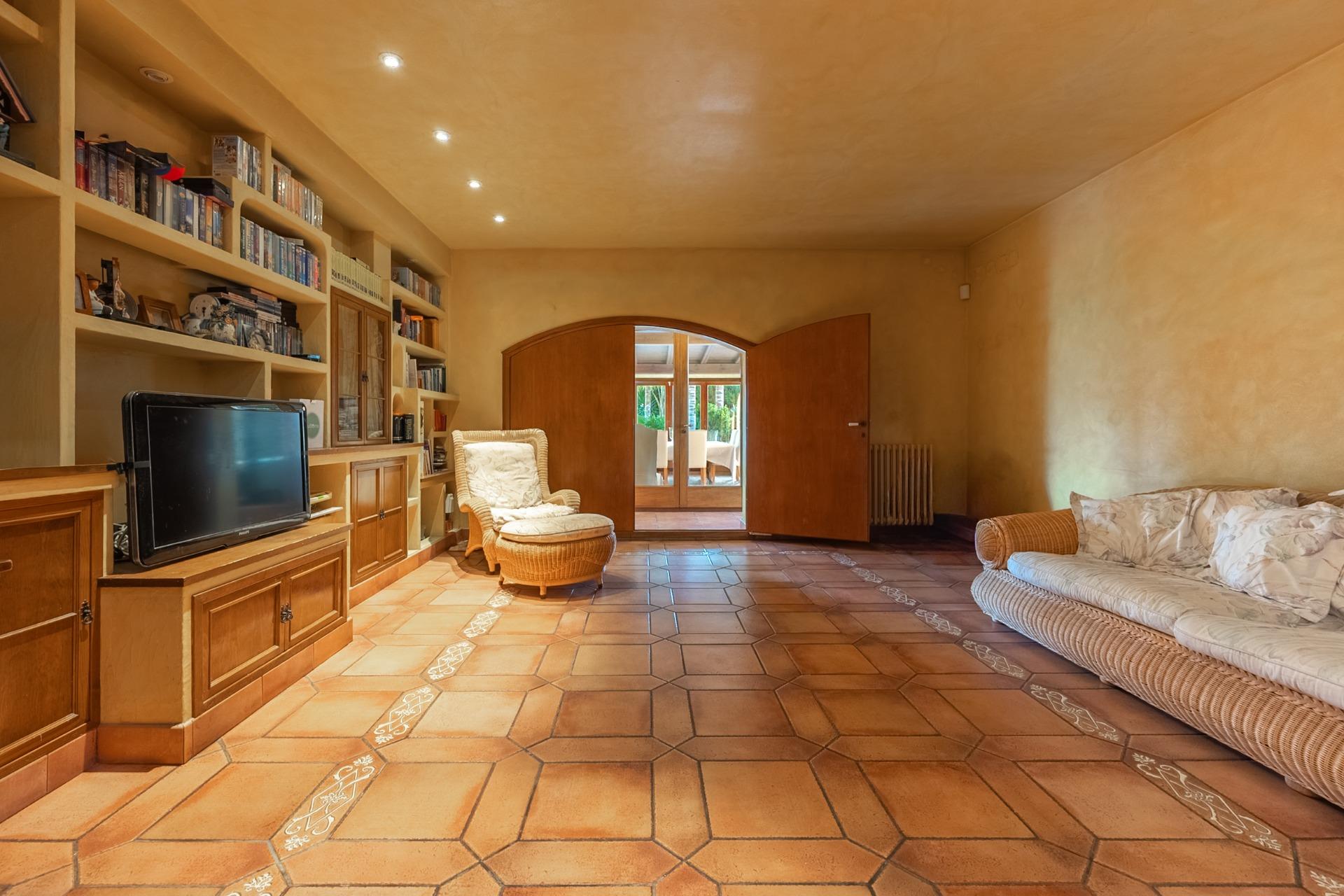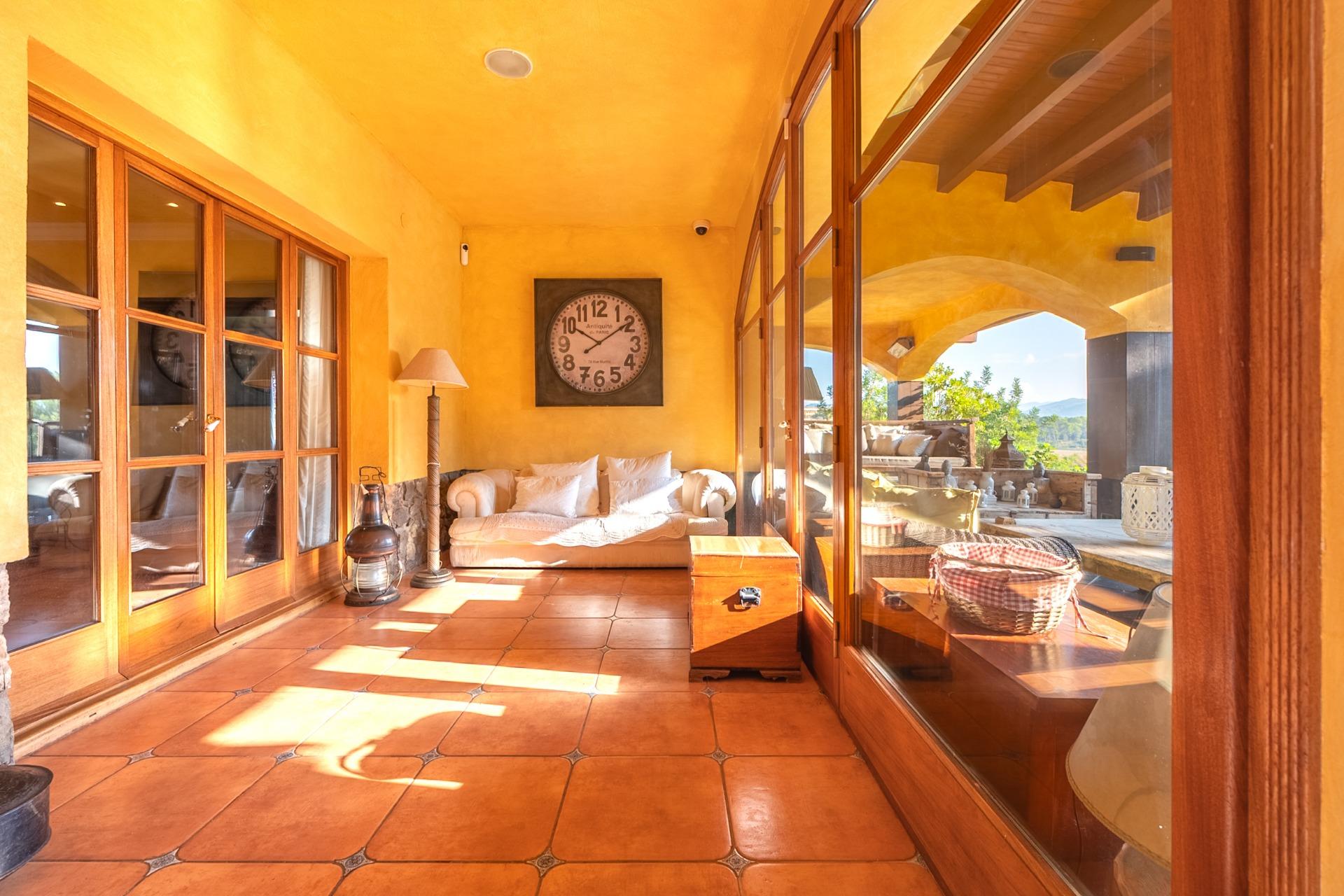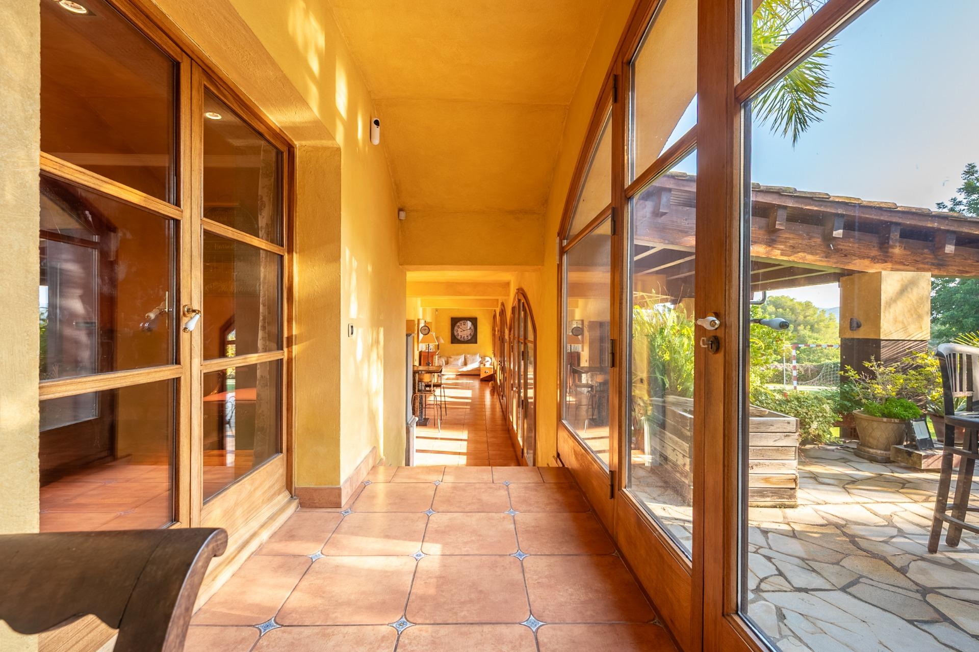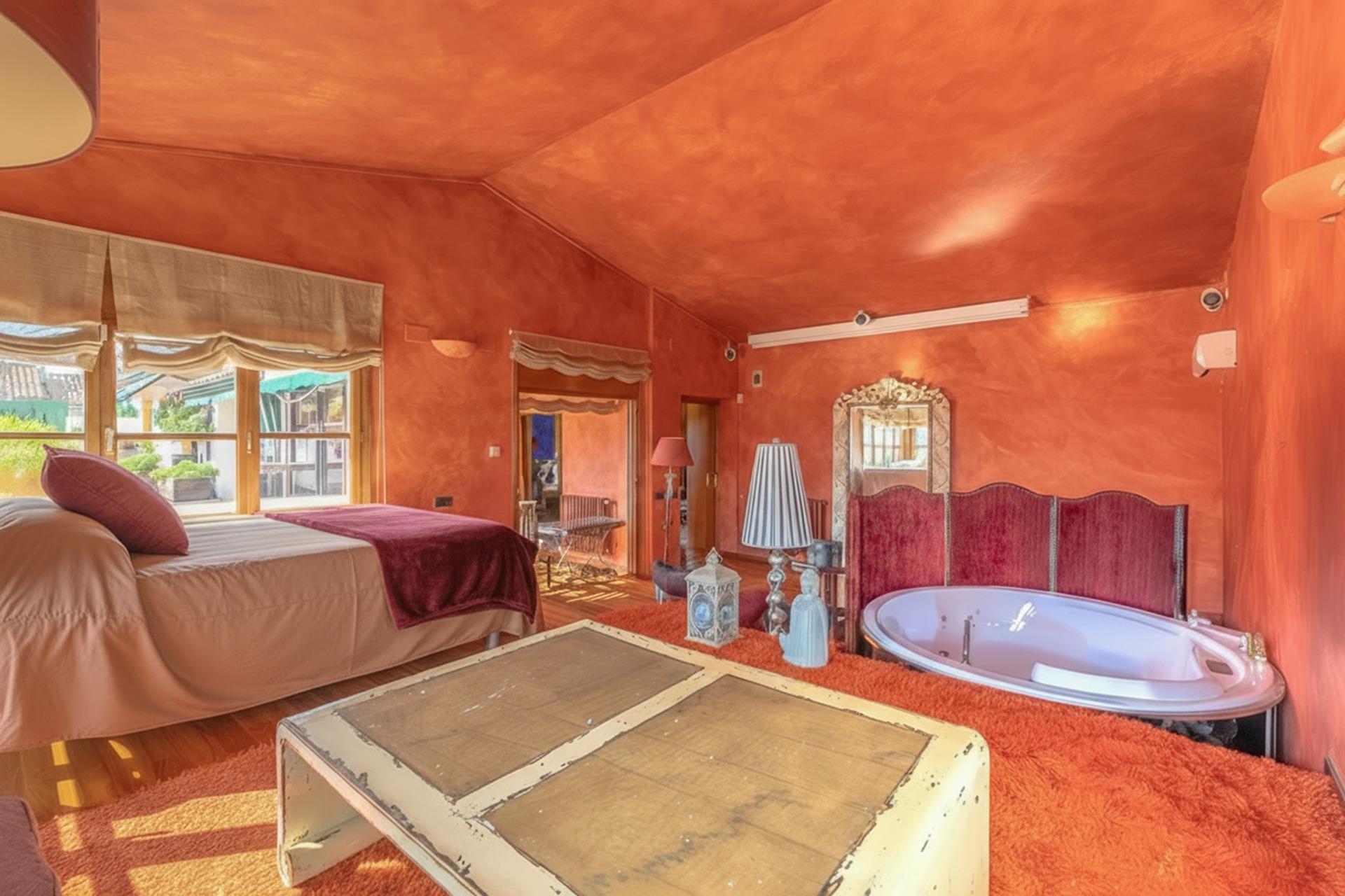 En la planta principal, un amplio hall da la bienvenida y conecta con un gran salón biblioteca, un comedor de 100 m² y una espaciosa cocina de 100 m². En esta misma planta se encuentra un segundo salón con chimenea y billar, así como un fantástico porche con zonas de comedor, estar y chill-out. Además, dispone de un comedor de verano acristalado con vistas al jardín.