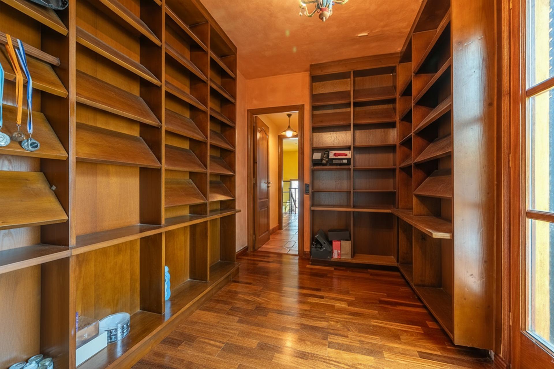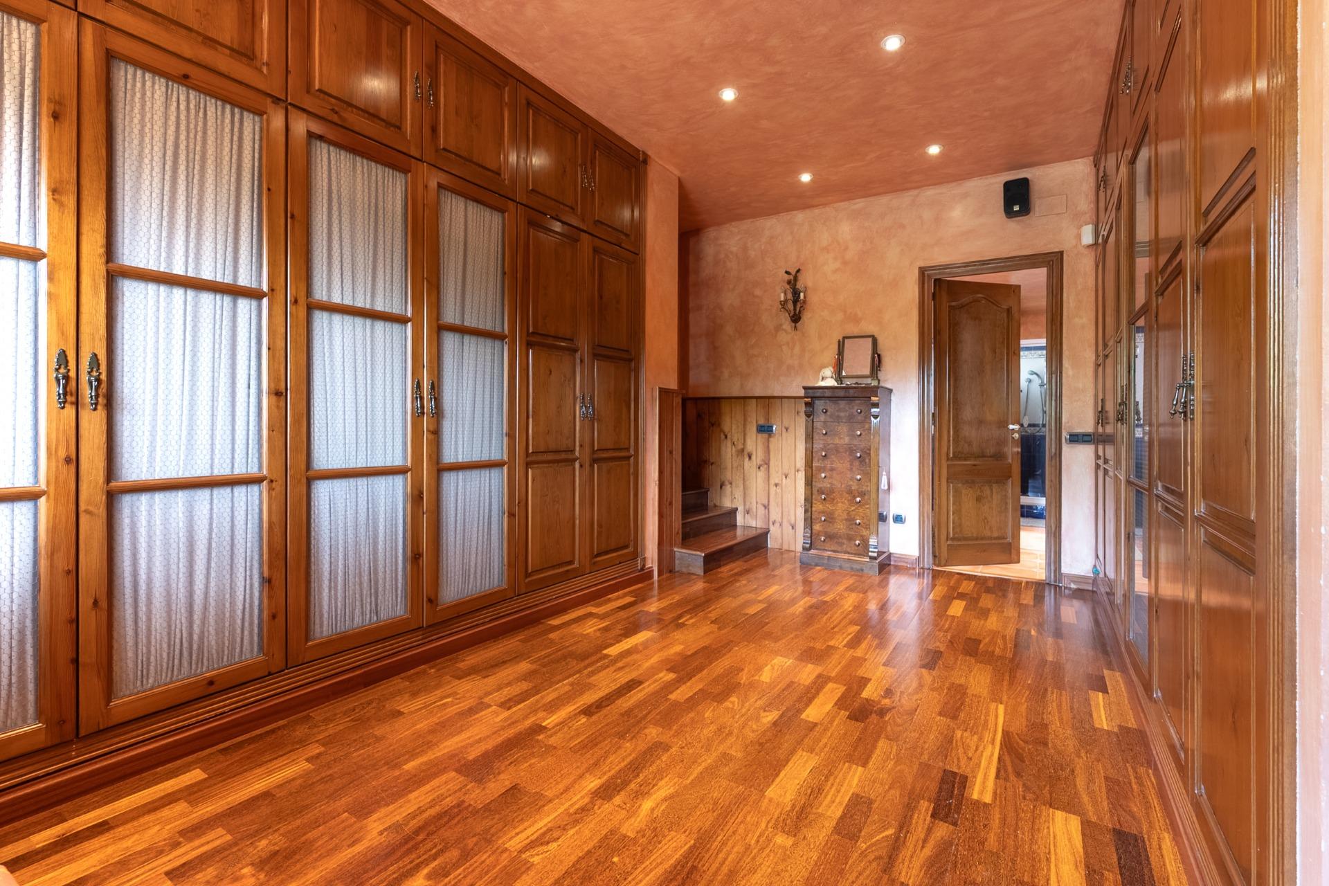 En la planta superior se distribuyen cuatro suites con baño completo y una espectacular master suite, que cuenta con dos vestidores independientes de 30 m² cada uno, dos baños completos, gimnasio privado y despacho.