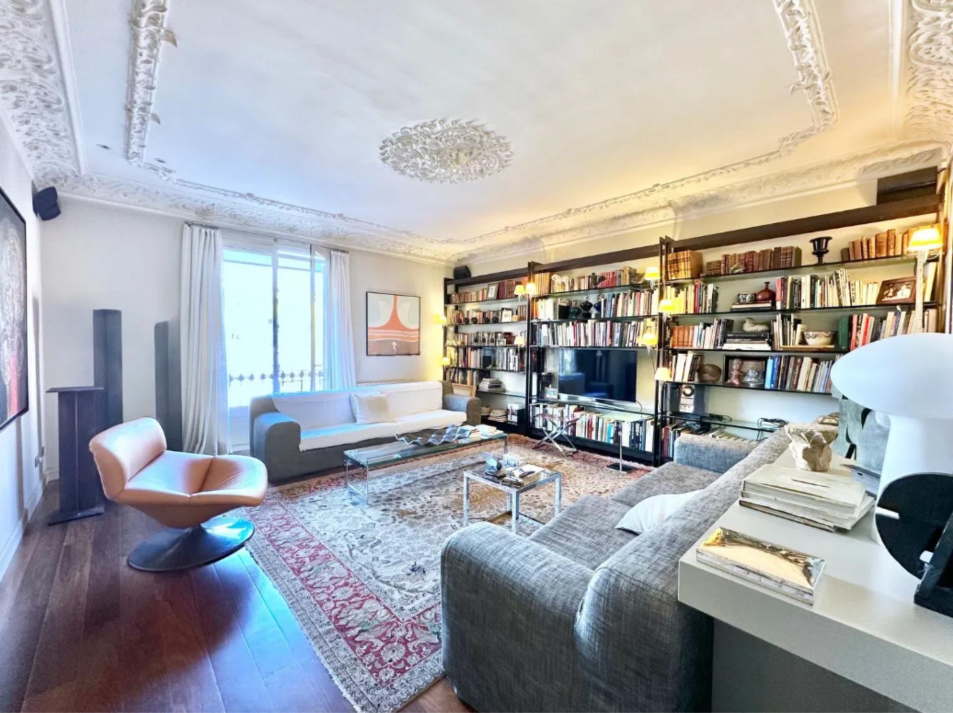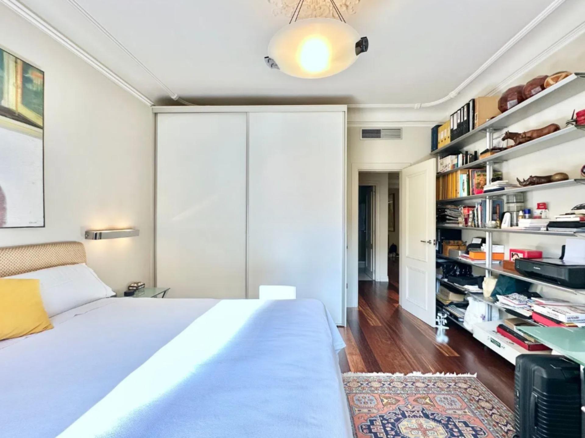 Los techos altos y los suelos de parquet contribuyen a la sensación de amplitud y al estilo señorial característico de las viviendas históricas de Barcelona.